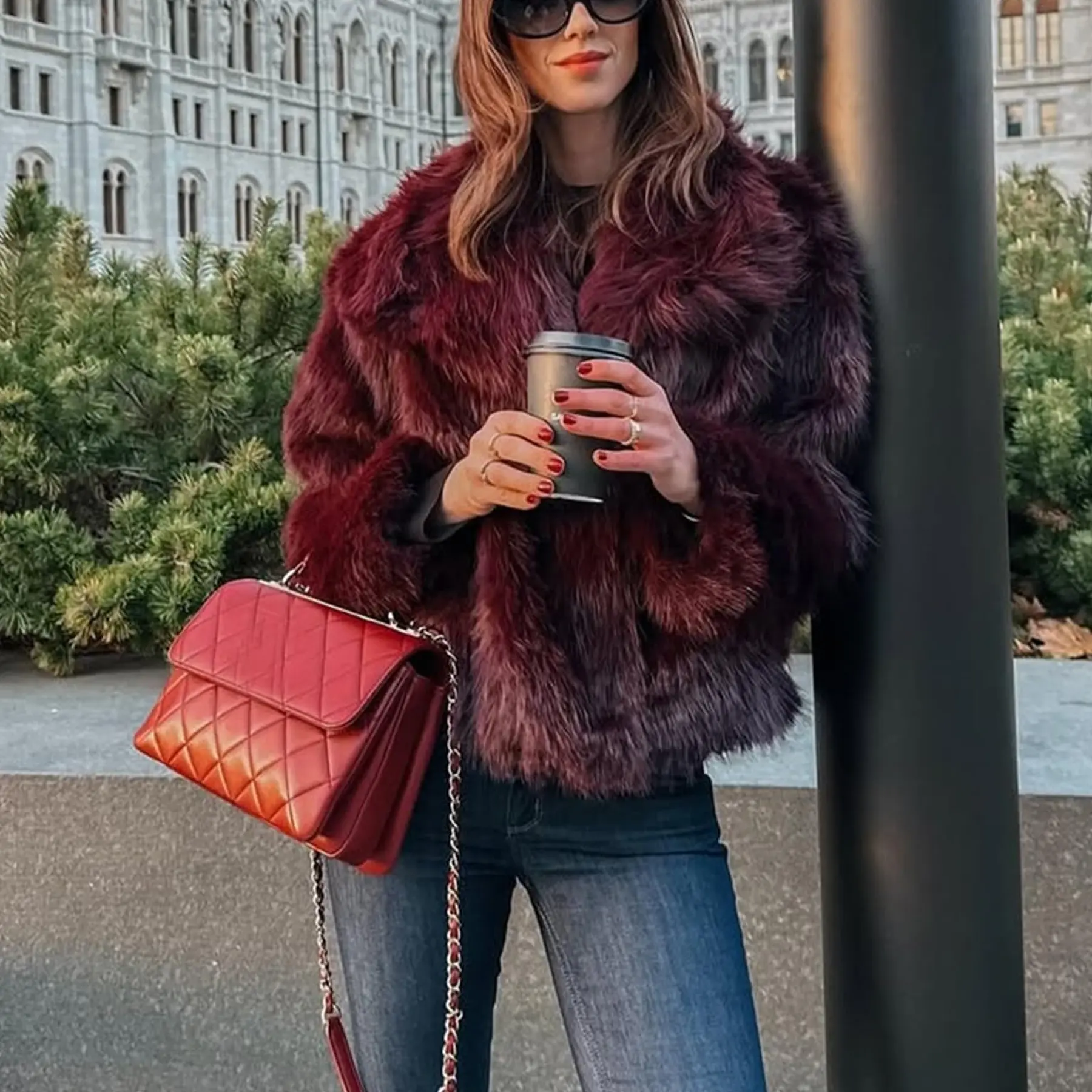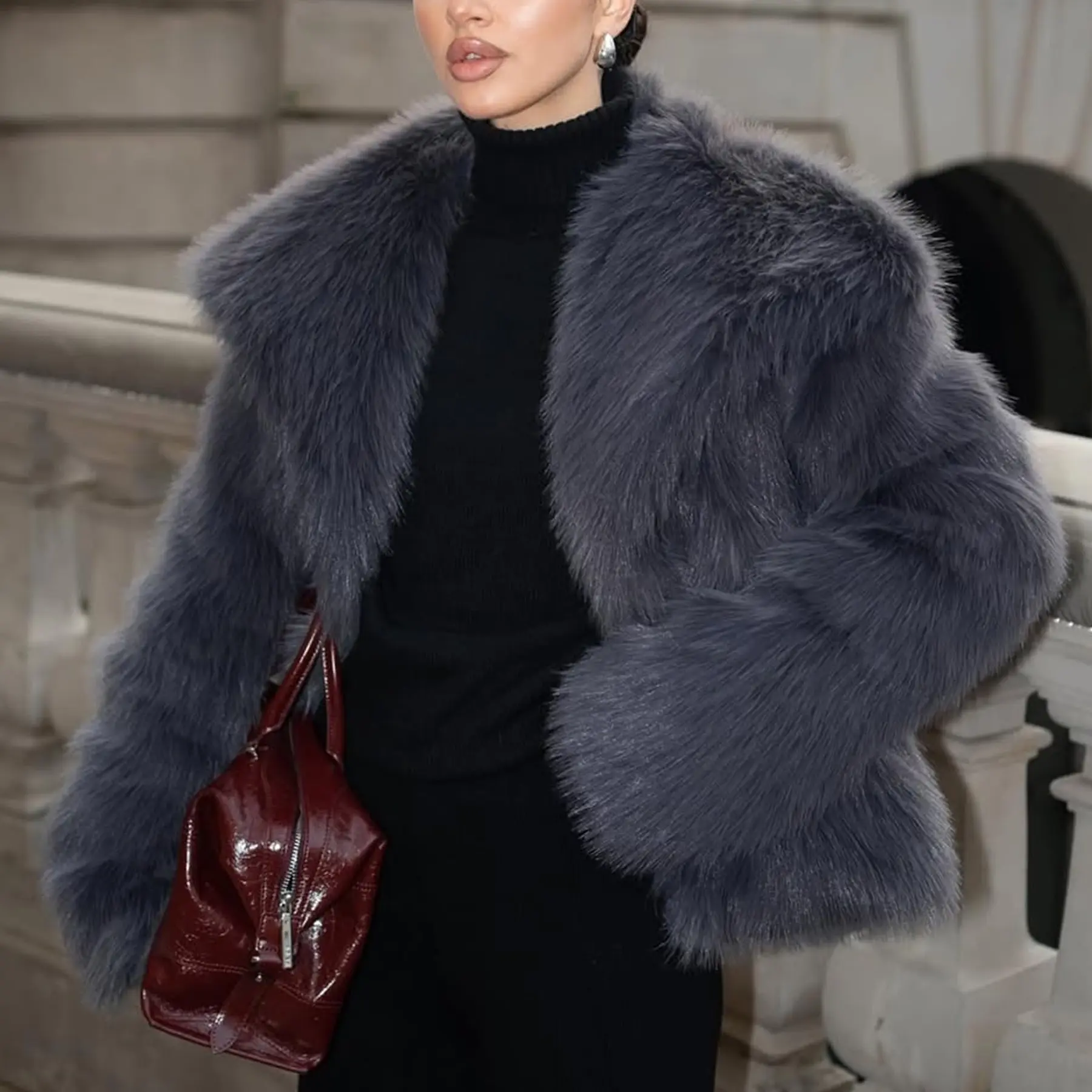 Warm: Trendy lapel faux fur jacket crafted from eco-friendly faux fur fabric, fluffy and smooth to wear, ensuring incredible comfort during fall and winter.