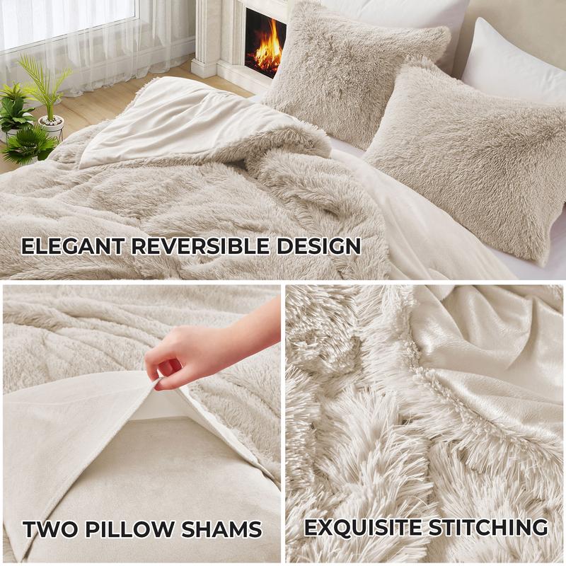 PEACE NEST Faux Fur 3-Piece Comforter Set - Soft, Plush, Cozy & Hypoallergenic Bedding for Ultimate All-Season Comfort