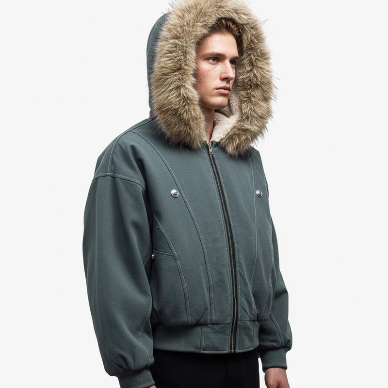 5. Faux Fur-Lined Zip-Up Hooded Bomber Jacket — Ribbed Cuffs & Hem, Winter Warm