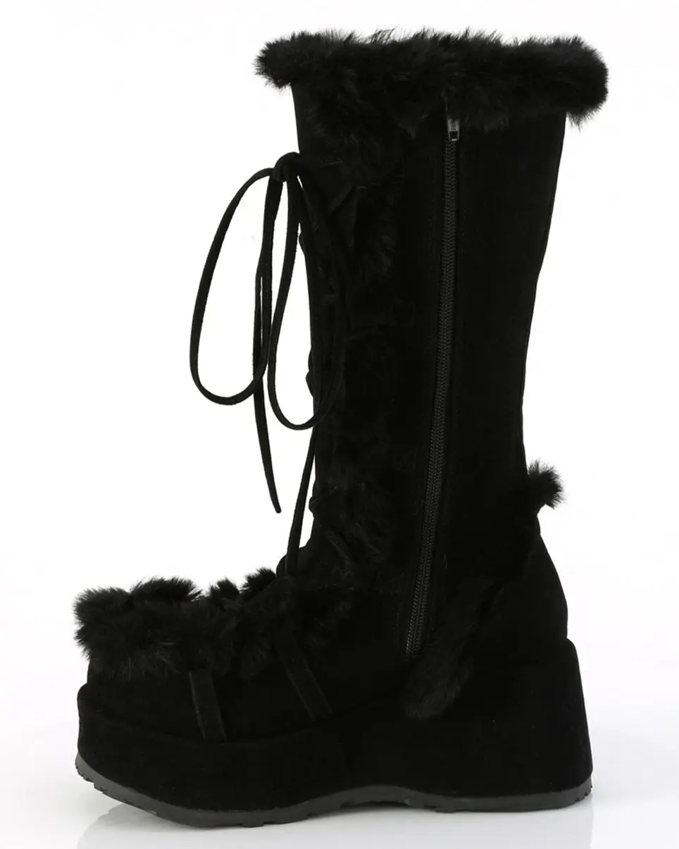 Demonia Black Winter Solstice Faux Fur Boots