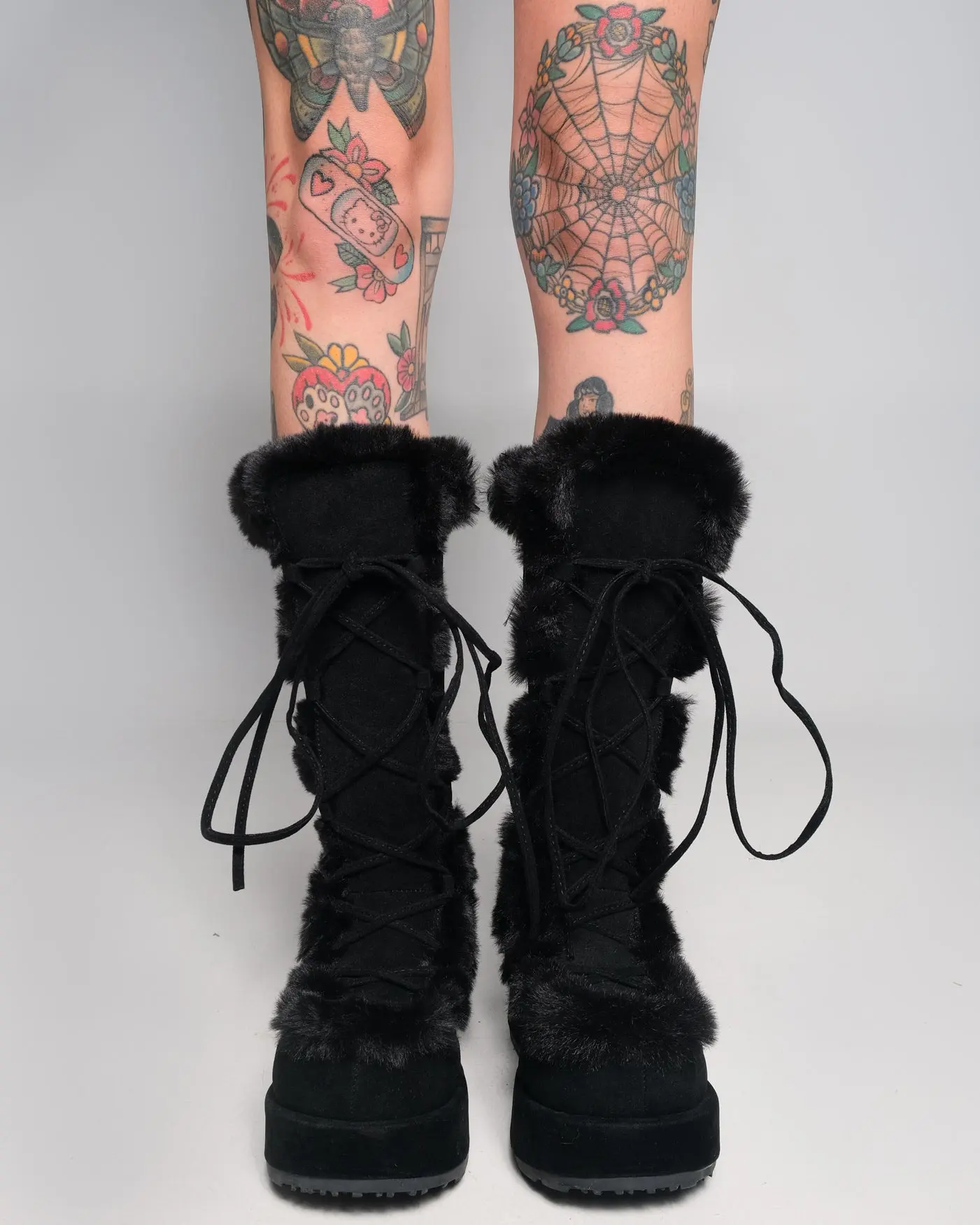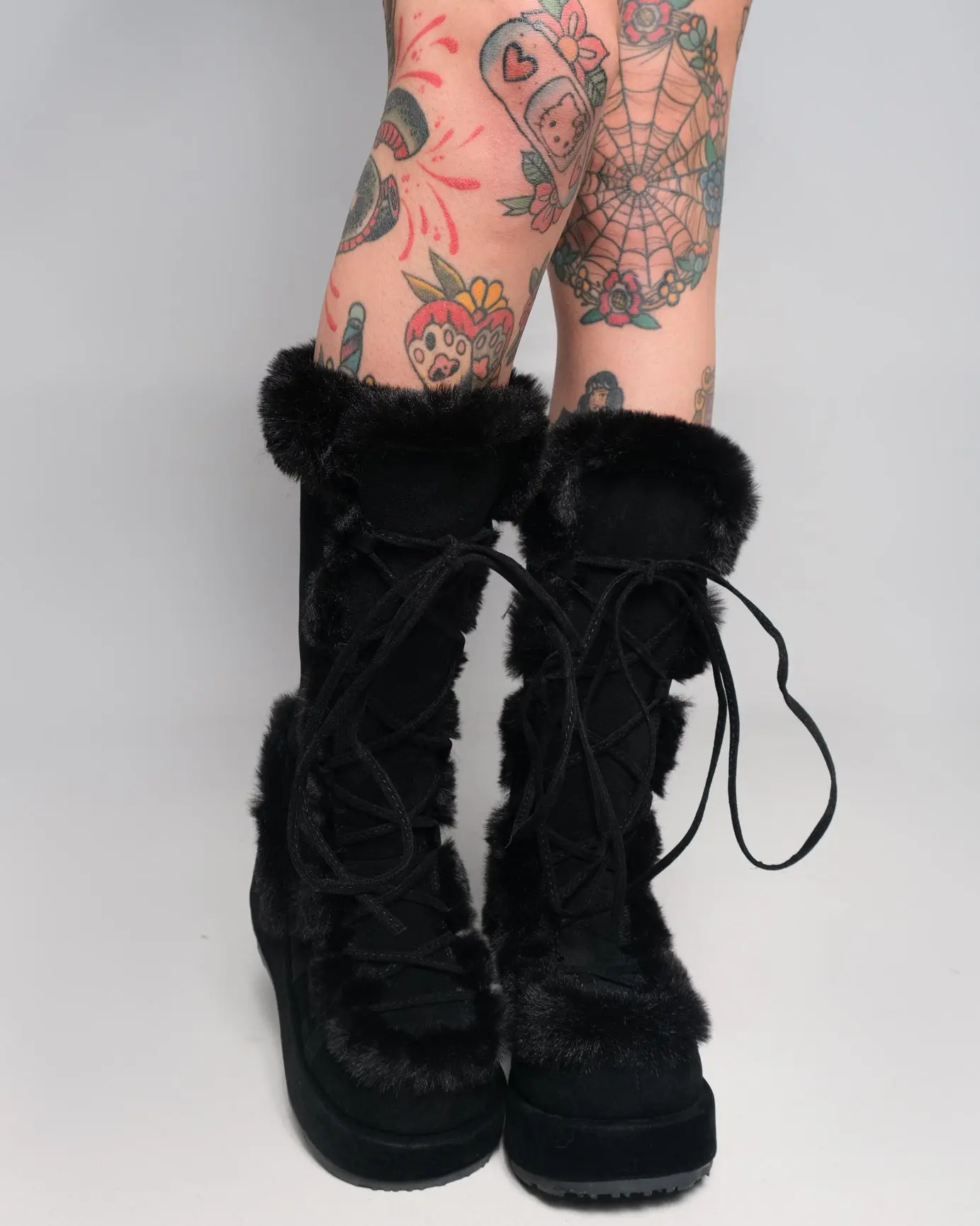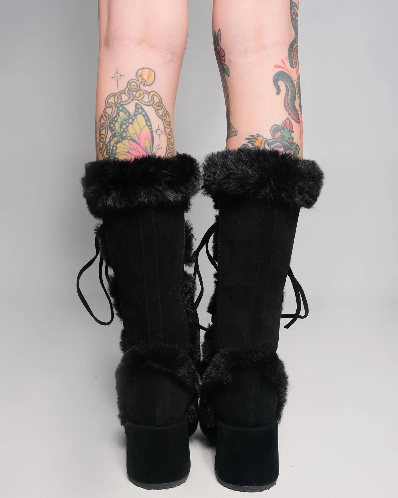 3/4" (70mm) Platform Lace-Up Mid-Calf Boot Featuring Faux Fur Trim Detail, Full Inner Side Zip Closure.