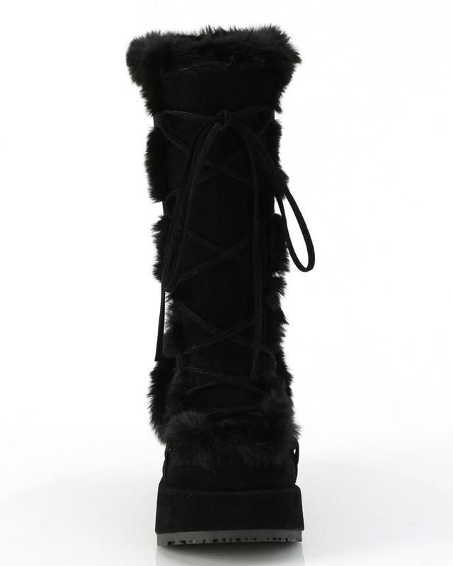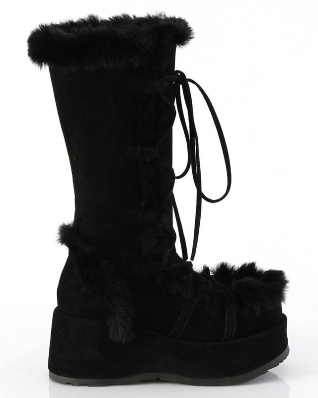 5. Demonia Black Winter Solstice Faux Fur Boots