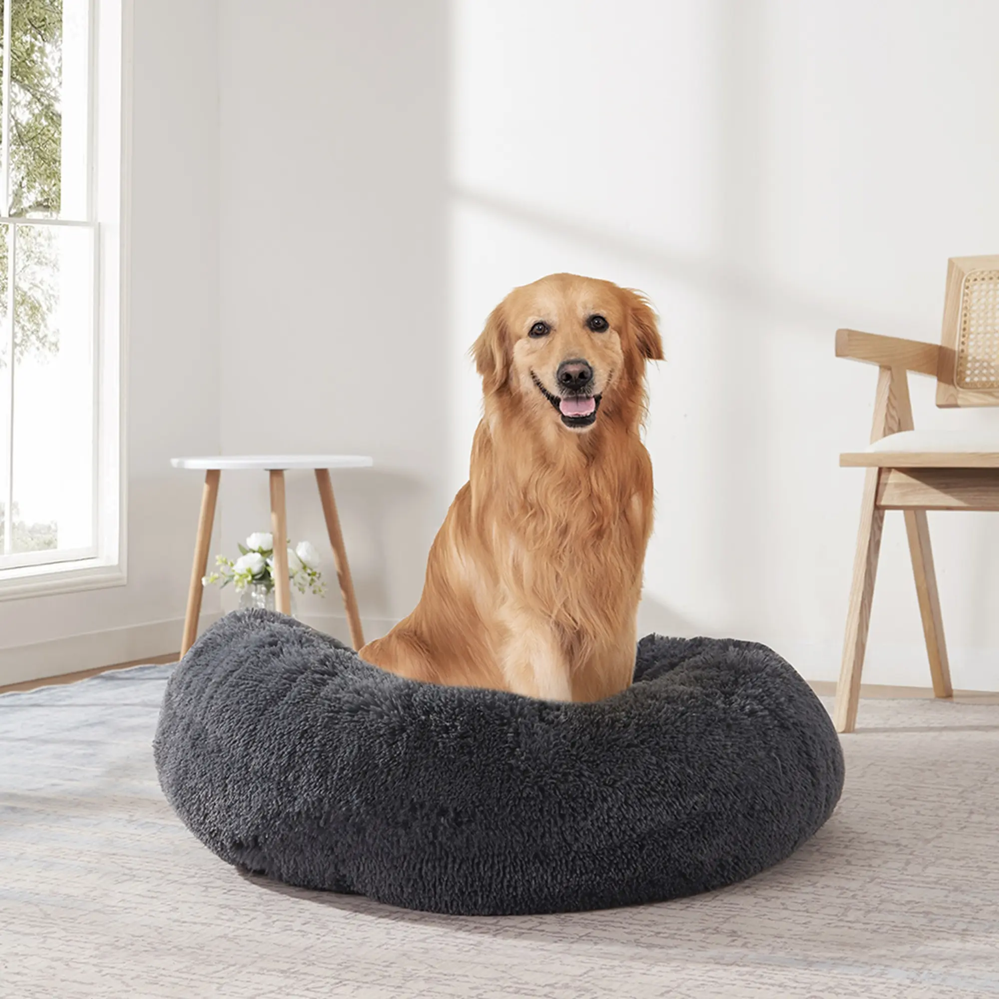 Indulge your furry friend in the lap of luxury with our one of a kind Sweet Home Collection™ Faux Fur Shaggy Round Calming Donut Pet Bed!