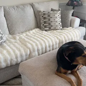 Beautiful fluffy gripping throws dog and I love them I have ordered 2 more great quality