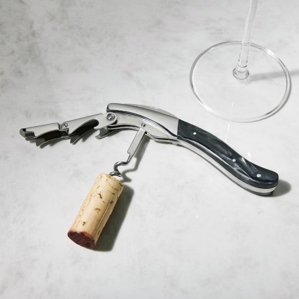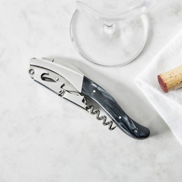 Our exclusive Faux Horn Executive corkscrew offers the high-quality functionality of a professional waiter’s corkscrew with a luxurious touch. This wine key is the ideal all-in-one tool, simple, portable, and timeless. A built-in foil cutter, double-hinged lever, and comfortable ergonomic grip make it easy to open bottles. The faux horn handle is crafted from hard-wearing, smooth resin, delivering a prized look that withstands hundreds of bottle openings. With its strong stainless steel body and mirrored finish, this unique waiter’s corkscrew will bring years of effortless openings and make a great keepsake gift for any lover. California Residents: PROPOSITION 65 WARNING