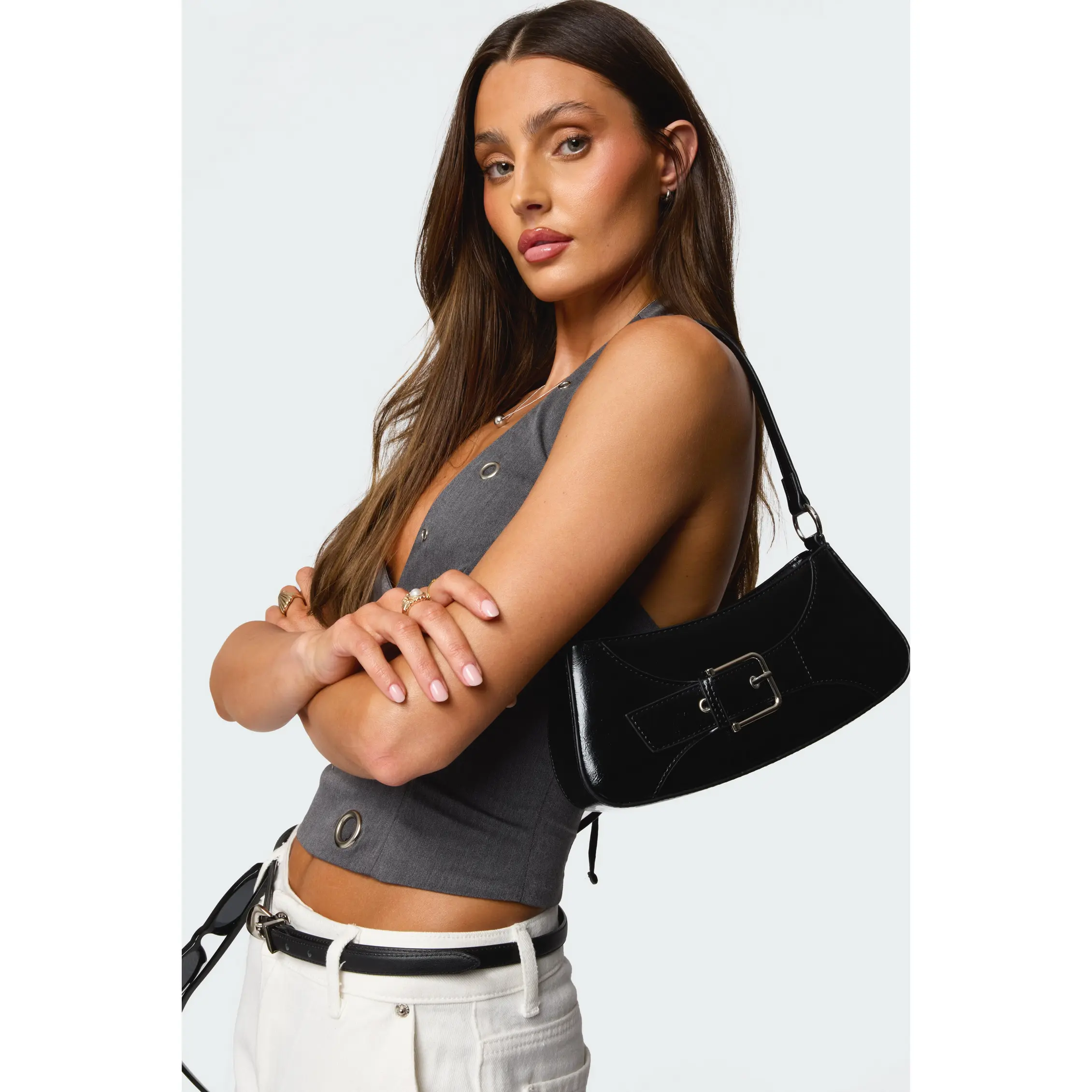 it’s the edikted buckle up faux leather bag in black #edikted #ediktedbag #y2kfashion #shoulderbag #ediktedbuckleupfauxleatherbag @Edikted