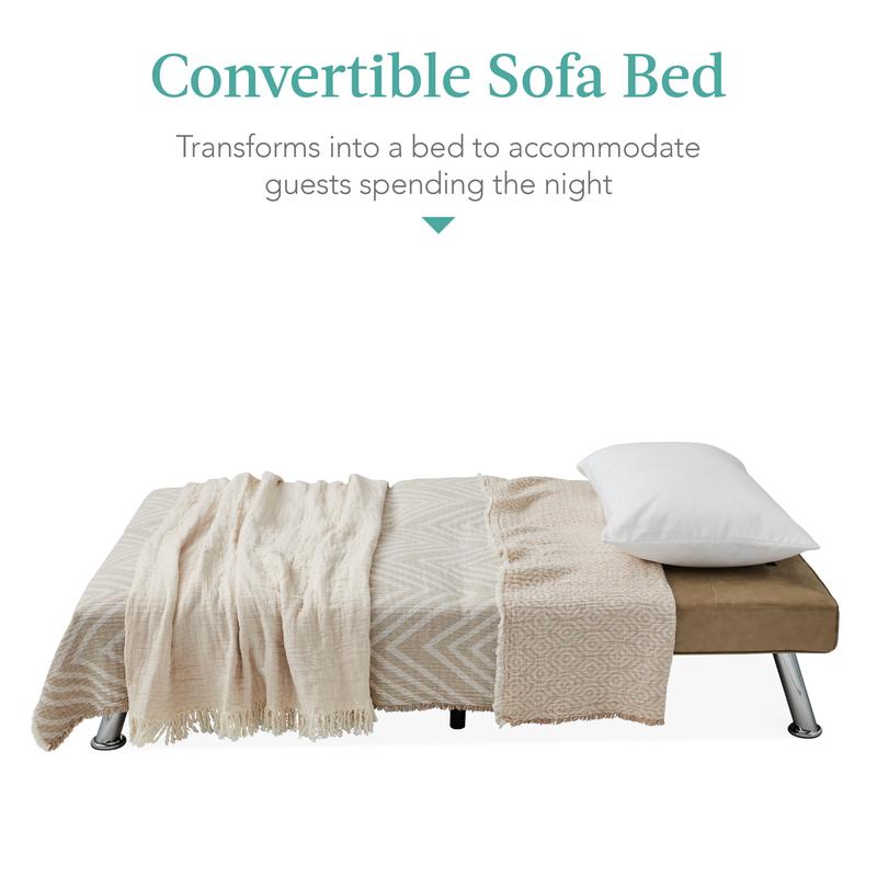 CONVERTIBLE SOFA BED: Stay prepared for overnight guests by taking advantage of the removable arm pillows and adjustable back to switch from sofa to a comfy bed in just seconds!