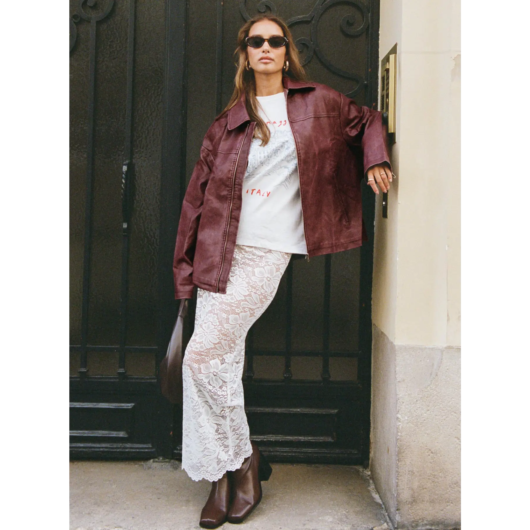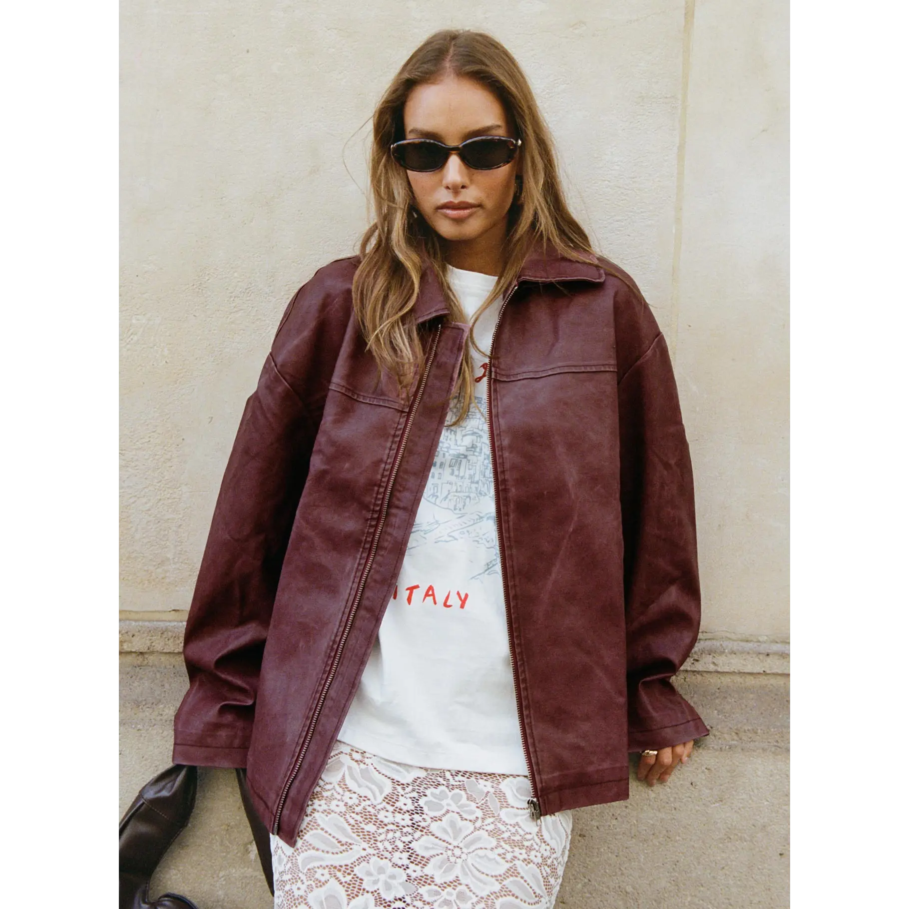5. Napoleon Faux Leather Jacket Burgundy