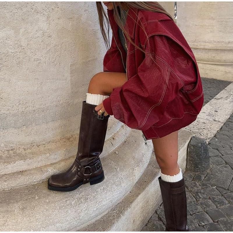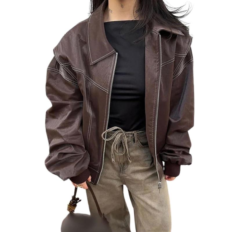 ·【STYLE】women‘s over-sized faux leather jacket/ zip up leather jacket women/ motor biker jacket women/ women's plus size faux leather jacket/ women's motorcycle bomber jacket/ windbreaker jacket women/ utility jacket women/ military jacket women/ cargo jacket women/ casual jackets for women/ women PU jacket/ fall winter clothes for women 2025