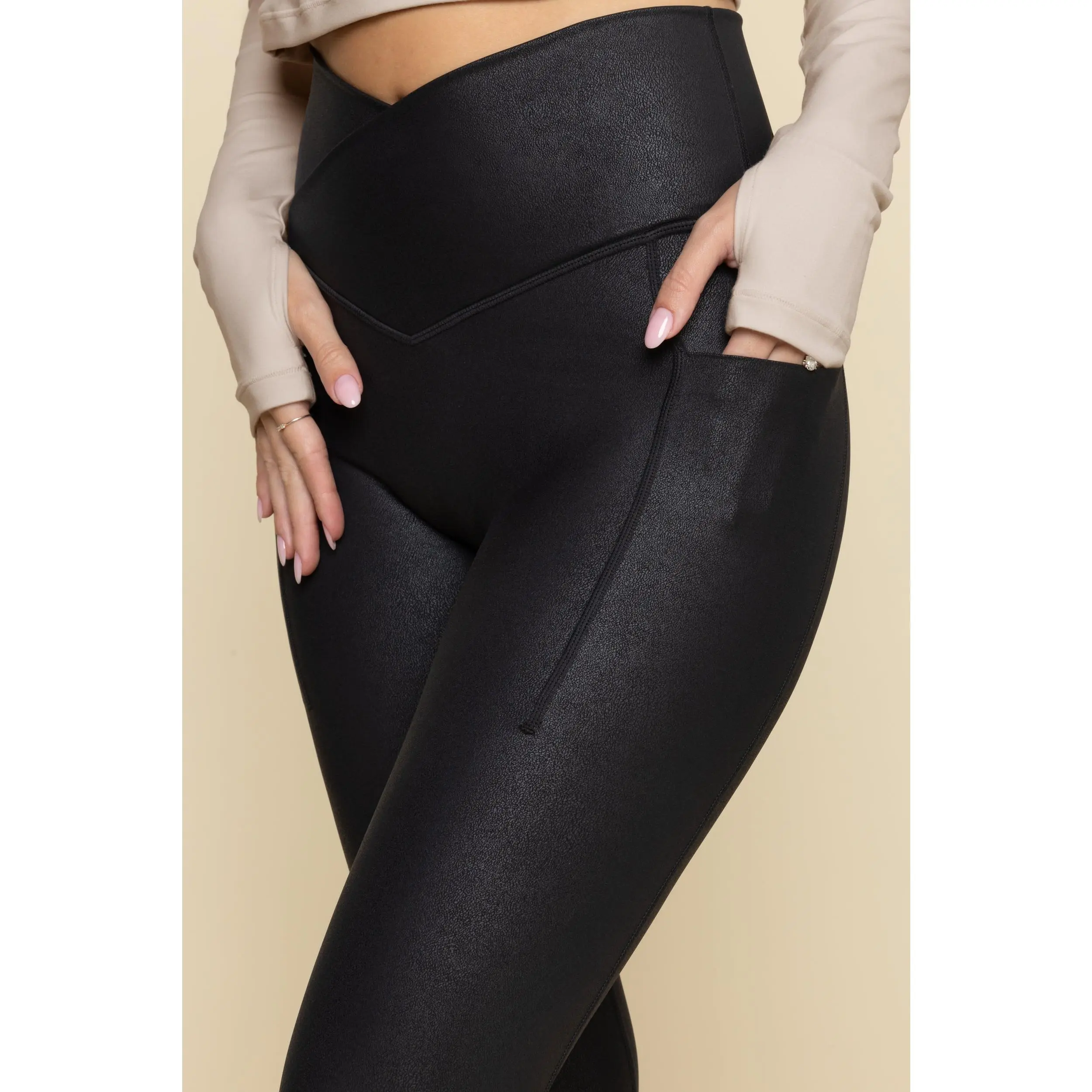 5. Crisscross Hourglass® Faux Leather Legging with Pockets - Black