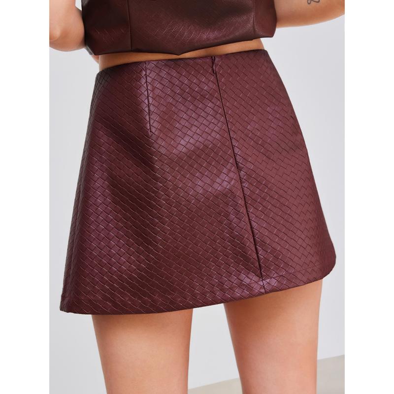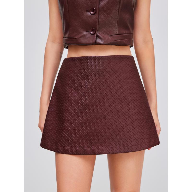 5. Cider [size 2-10] Faux Leather Low Rise Solid Zipper Mini Skirt