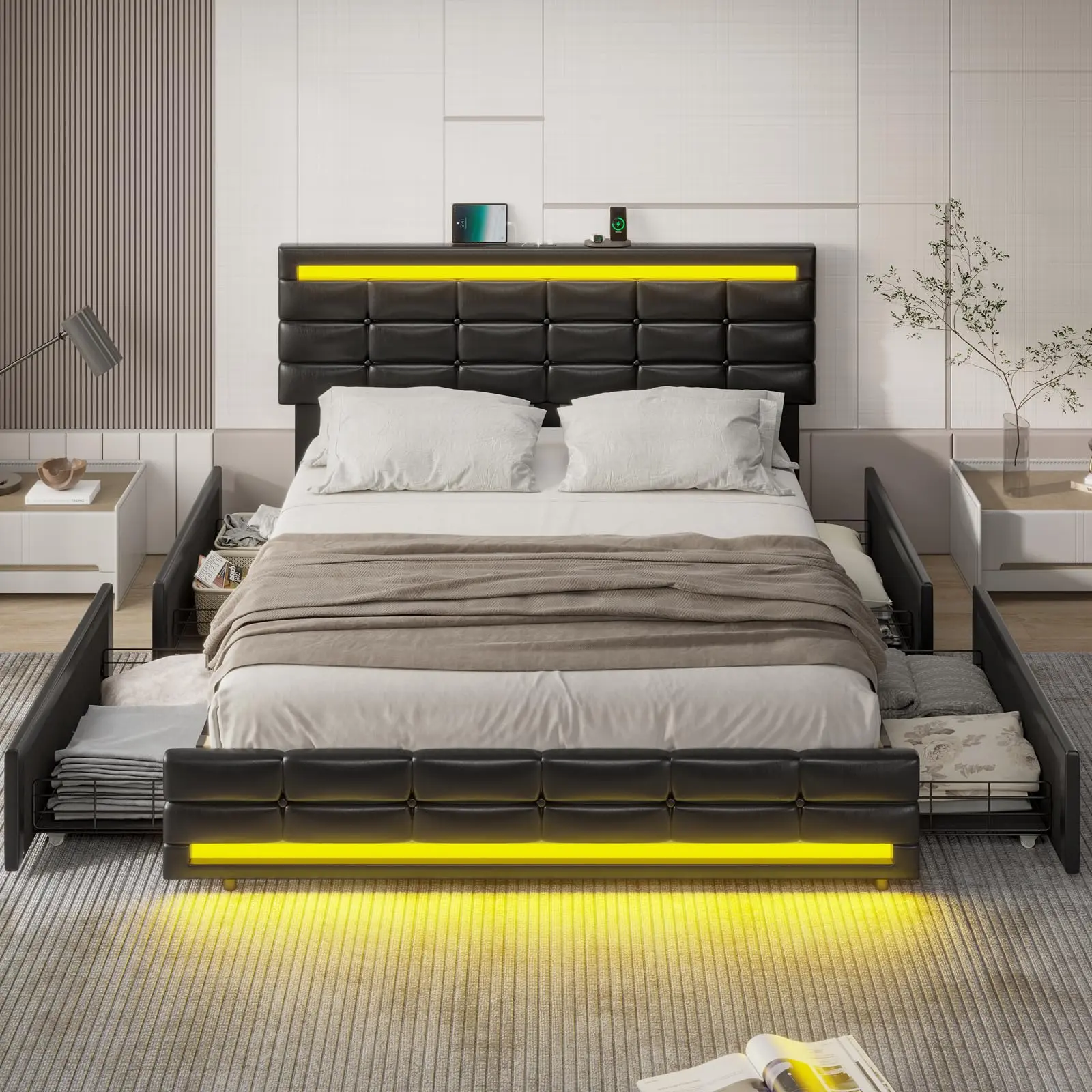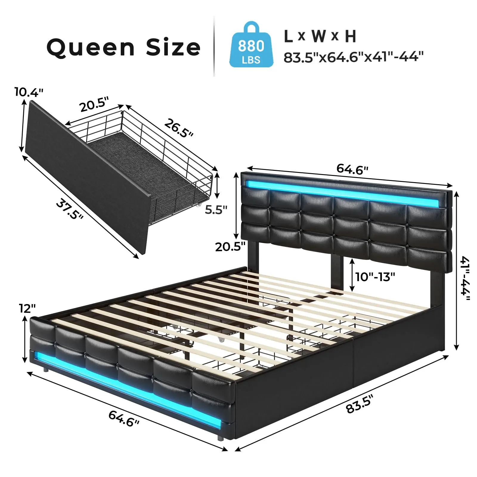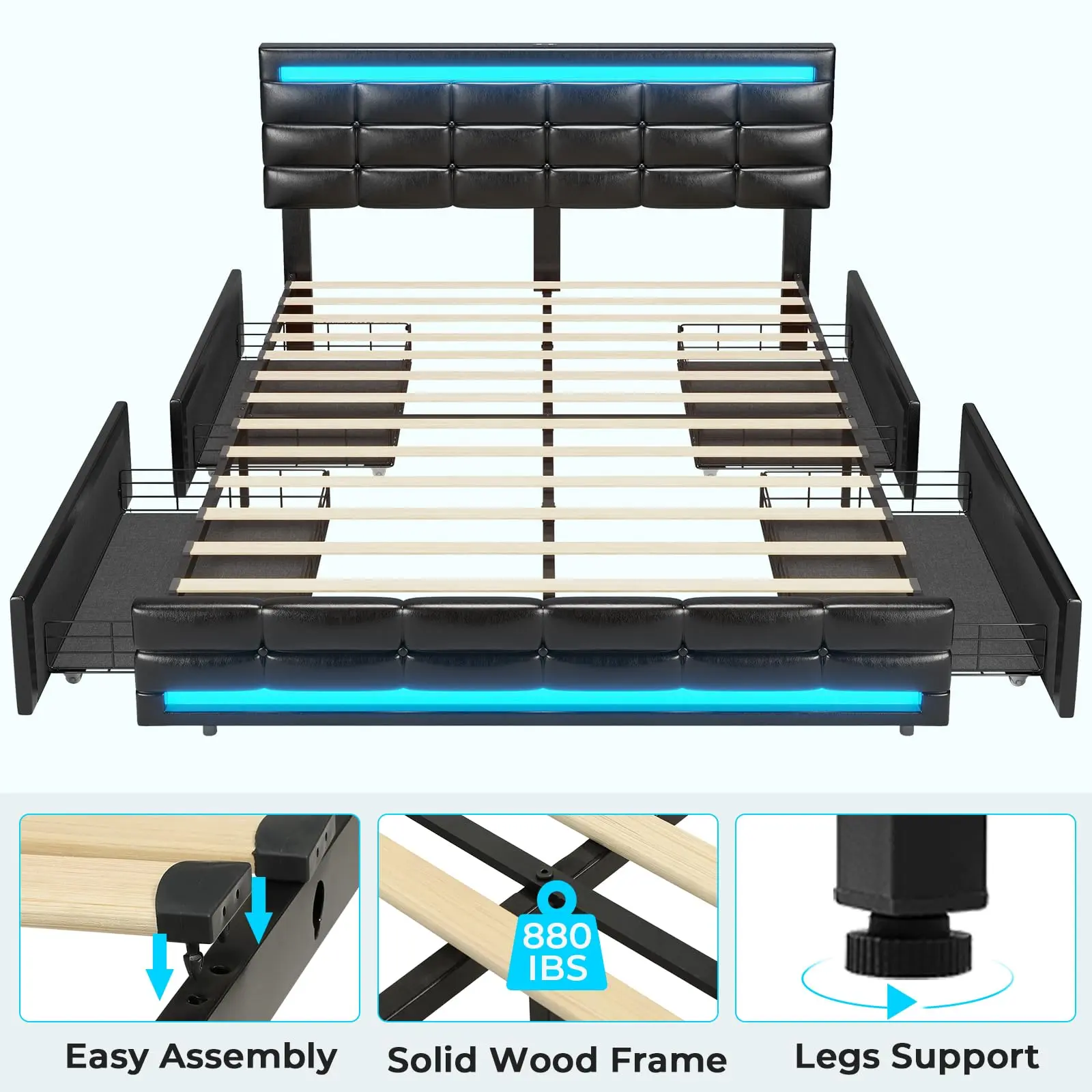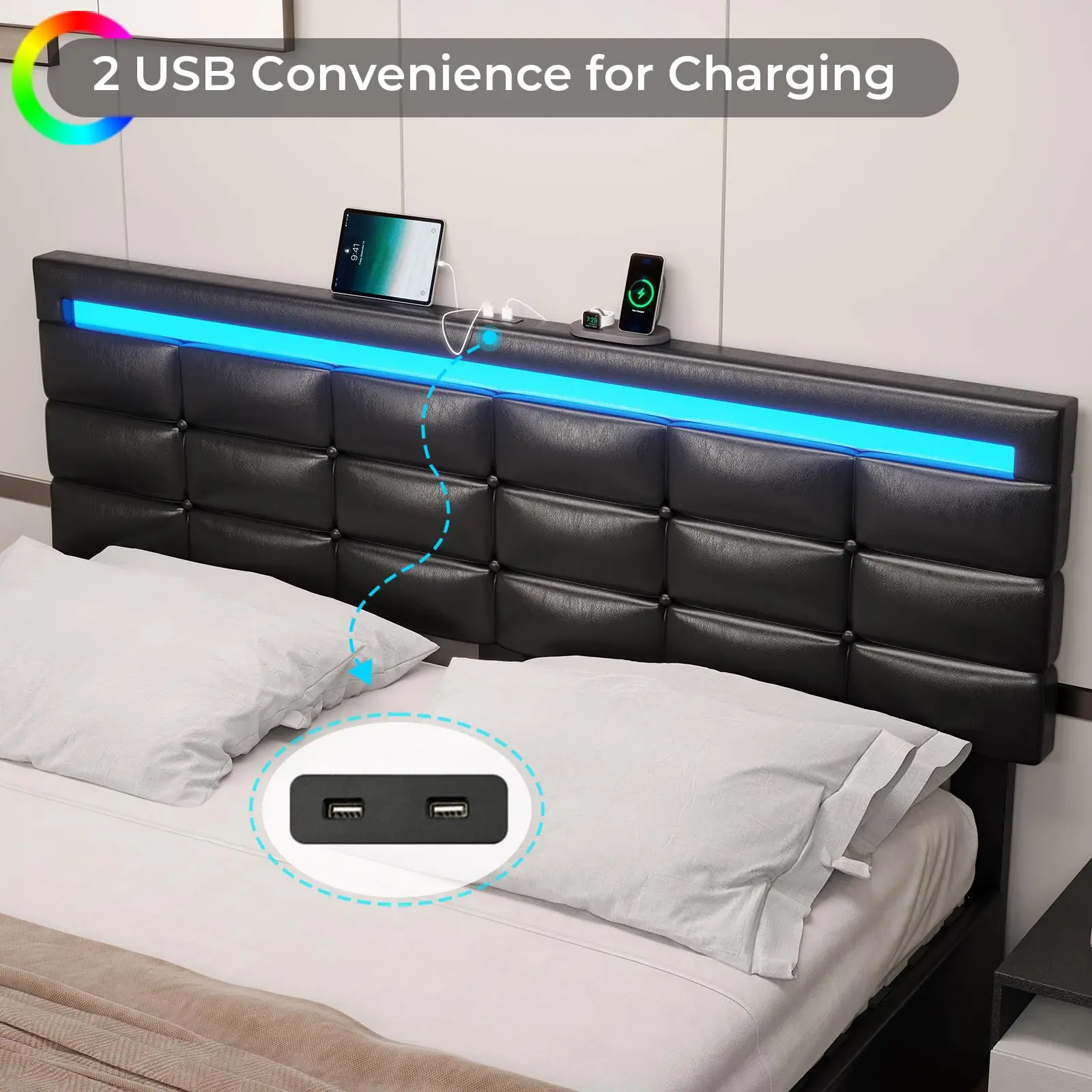 ·LED Charging Station: Equipped with an LED charging station, this bed frame allows for easy charging of electronic devices, making it a practical addition to your bedroom.