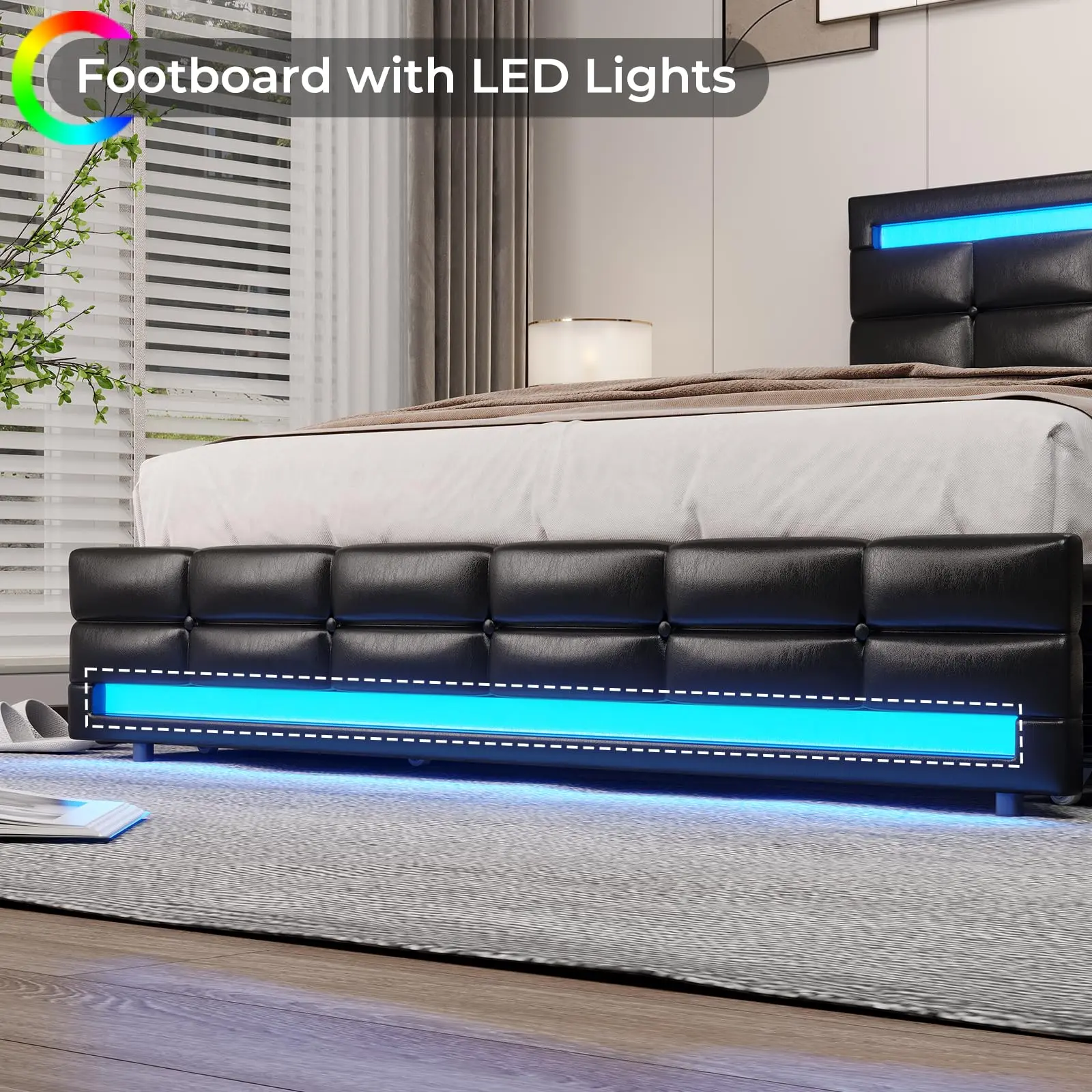 Discover the perfect blend of style and functionality with the Sikaic Queen Size Faux Leather Platform Bed Frame. This LED Bed Frame is designed to enhance your bedroom experience with its modern features.