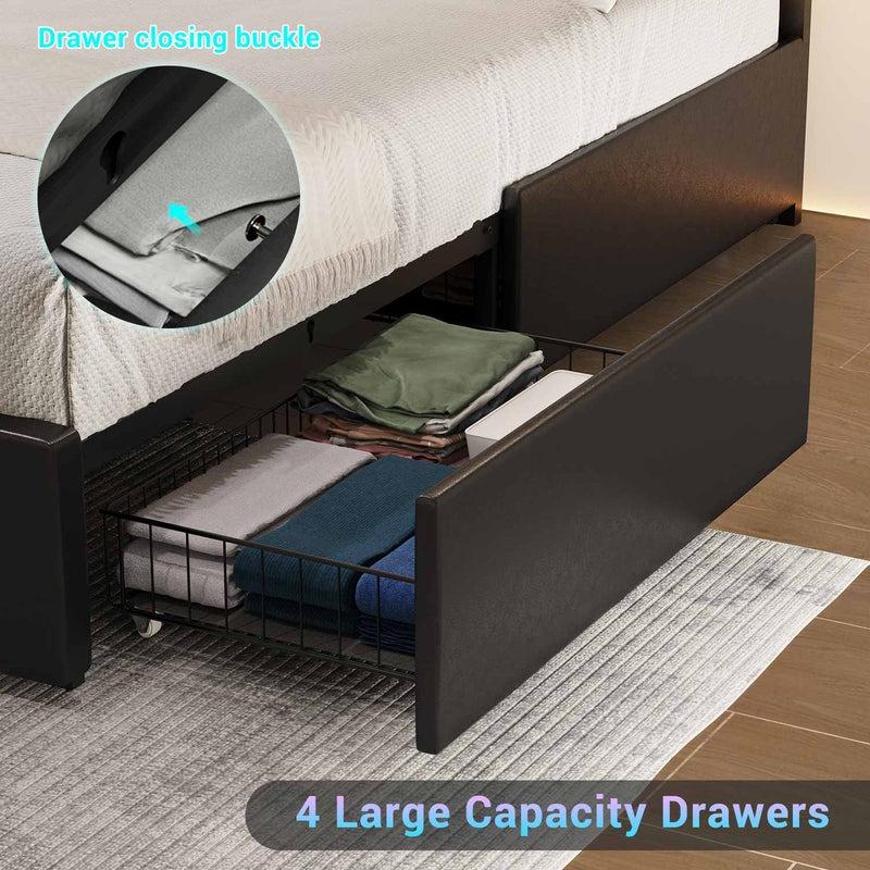Sikaic 4 Drawers Faux Leather Upholstered Platform Bed Frame With LED Headboard BlackSikaic 4 Drawers Faux Leather Upholstered Platform Bed Frame With LED Headboard Black