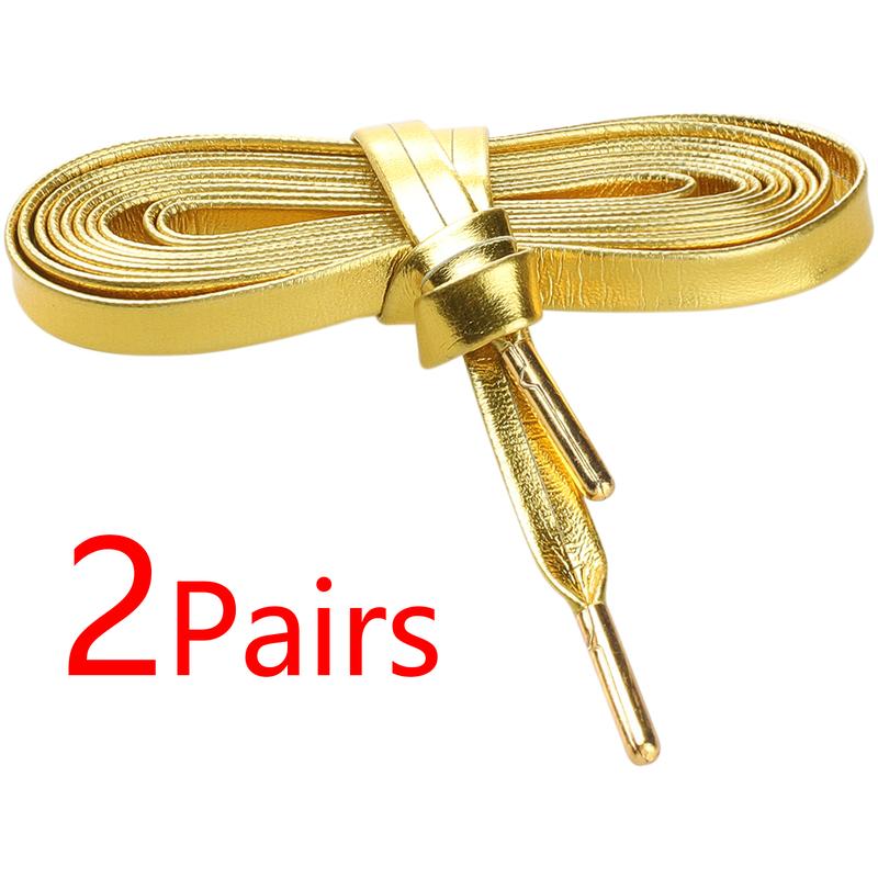 5. INSPIRE CHIC 2 Pairs Faux Leather Shoestrings Solid Color Flat Shoelaces with Metal Tippings for Sneakers Boots 80cm/31.5" Golden