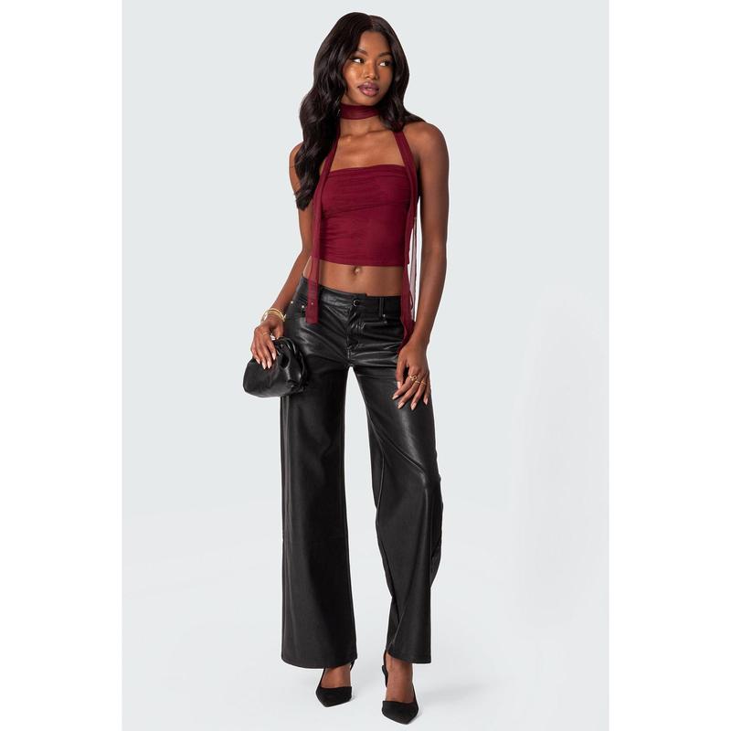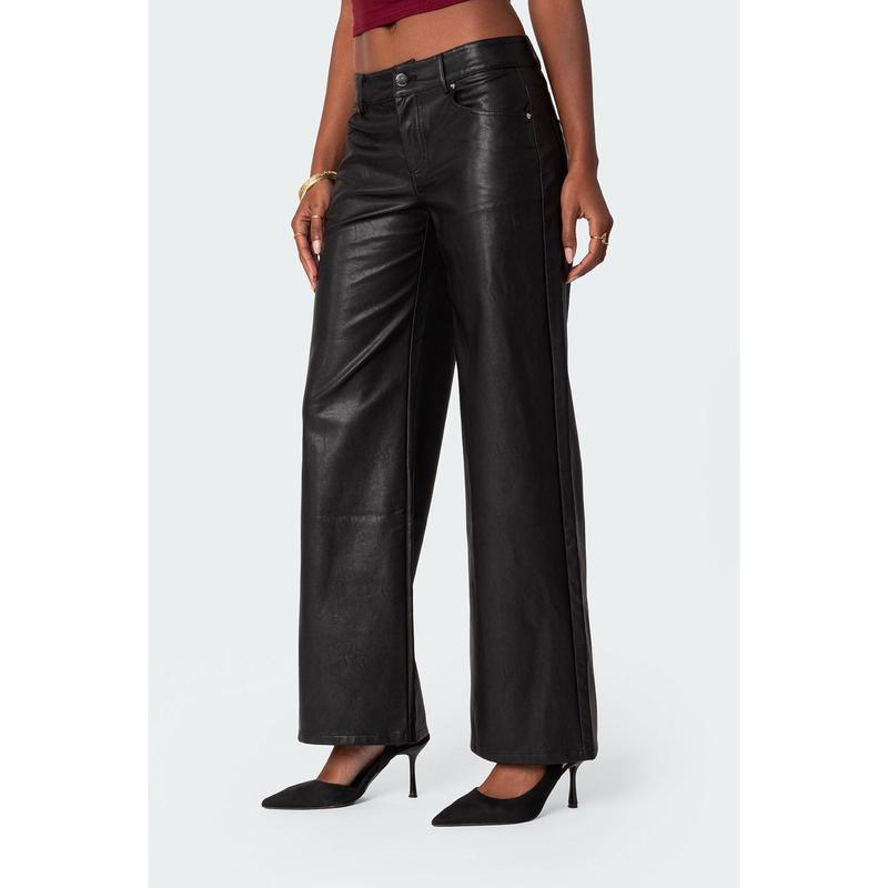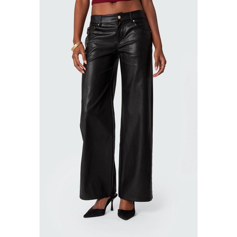 Faux Leather Straight Leg Pants