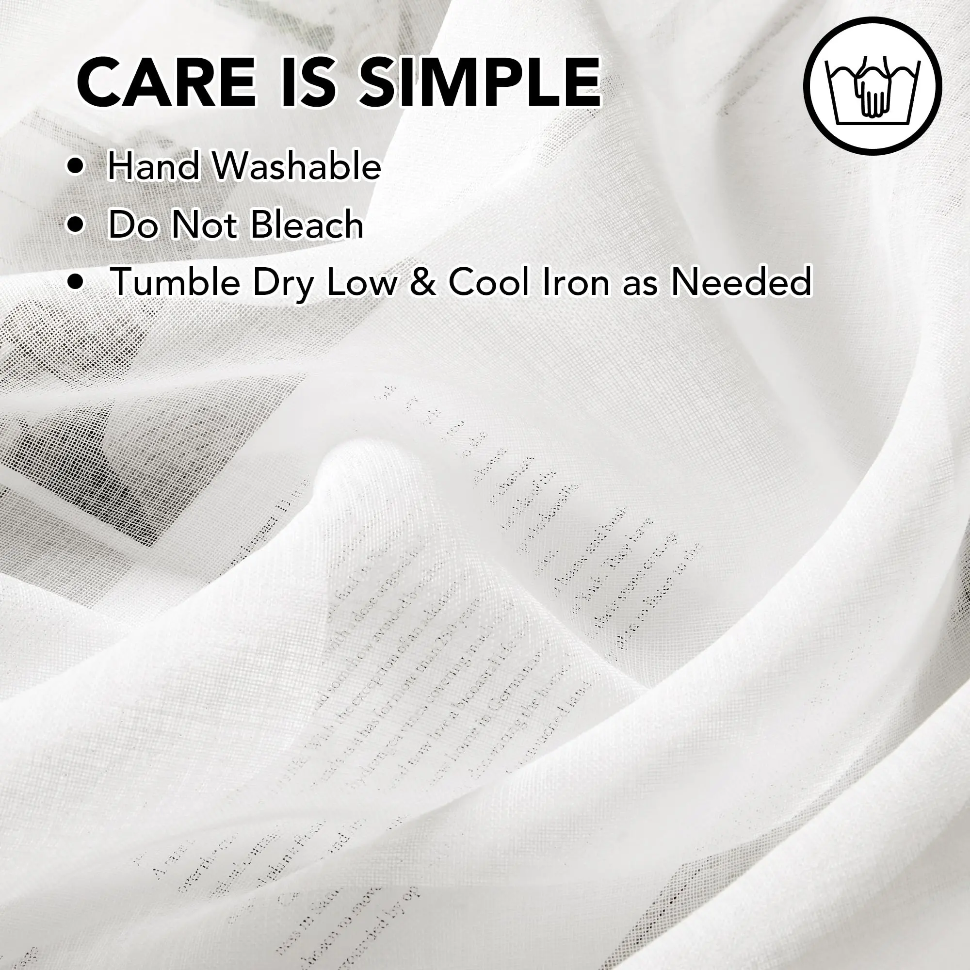 ·CARE INSTRUCTION: To protect the waterproof effect, these enduring sheer curtain panels are hand washable in low temperature water. Do not bleach and tumble dry and low heat ironing only if necessary.