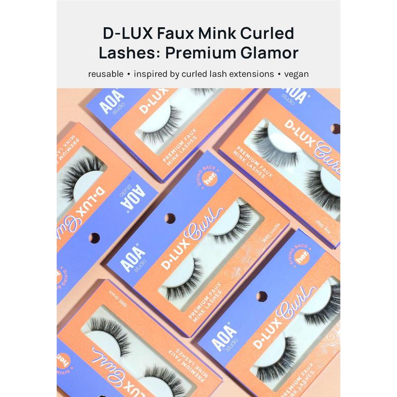 Inspired by lash extensions, lightweight, + SUPER CURLED, AOA D-LUX Curl Faux Mink Premium Lashes are stacked with multi-layered 100% Vegan fiber to add wispy length, lift, + volume to all eye shapes. Features a sturdy lash band to last multiple wears.