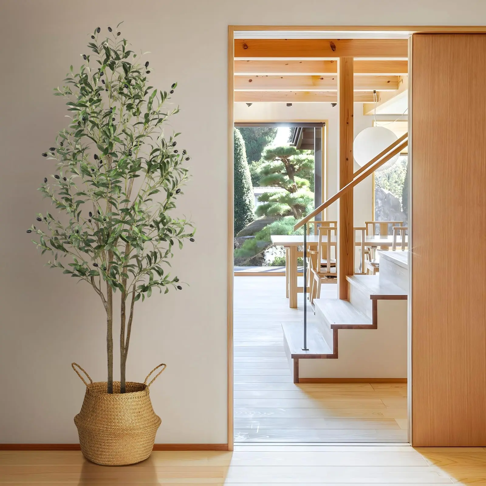 ·【Perfect Dimensions】:Standing at a graceful height of 4/5/6/7 foot, this artificial olive tree is a charming addition to any space. Each branch and fruit is meticulously crafted, offering a full-bodied appearance that rivals its natural counterpart. Infusing a touch of nature into your living environment, this tree enhances comfort and adds an artistic flair to your décor.
