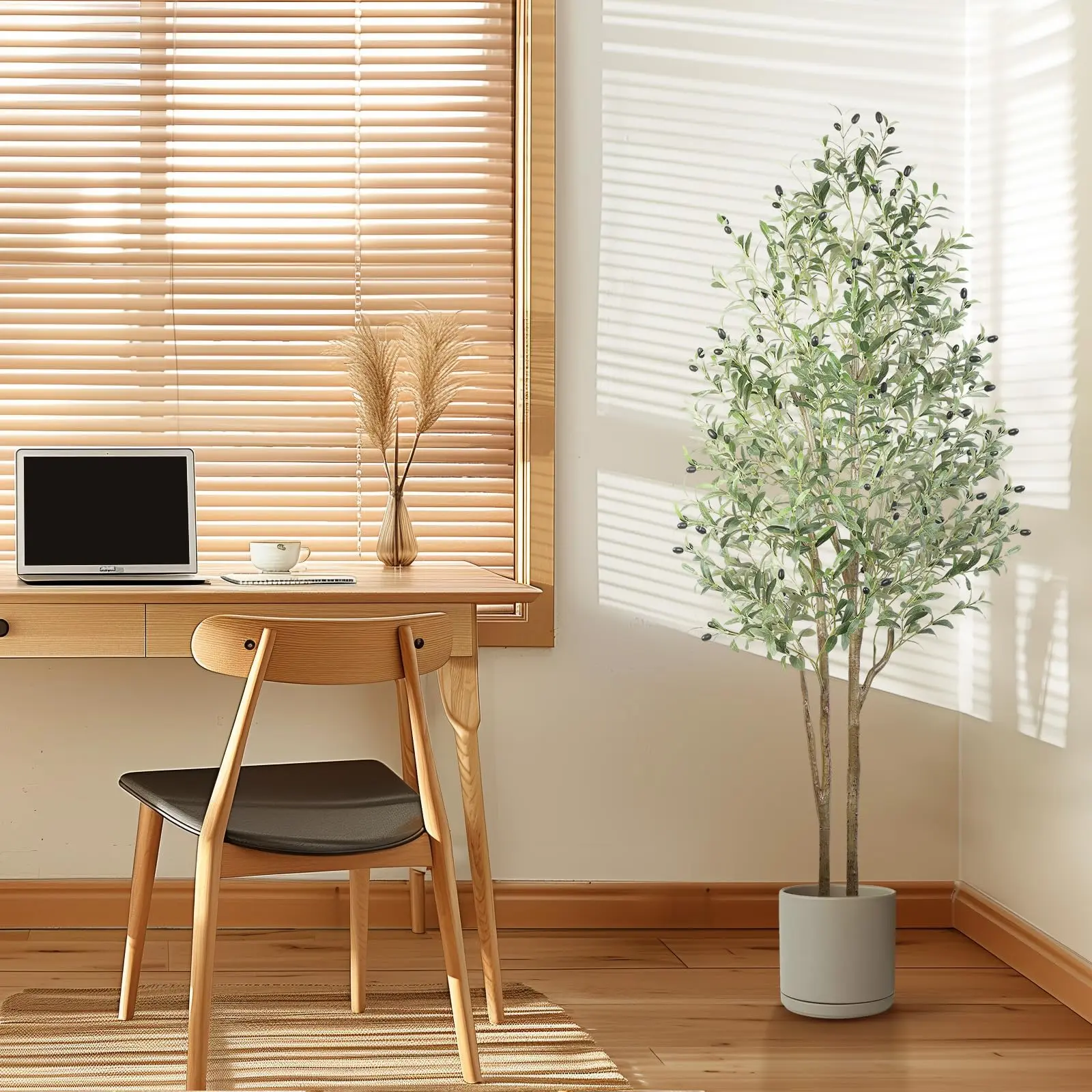 ·【Flexible Utilization】:This 6ft Artificial Olive Tree is ideal for enhancing living rooms, bedrooms, reading nooks, dining areas, and offices. It also complements entryways, patios, bookstores, coffee shops, and other commercial spaces. Perfect for occasions like Christmas, Thanksgiving, or housewarmings, it makes a thoughtful gift for friends and family.