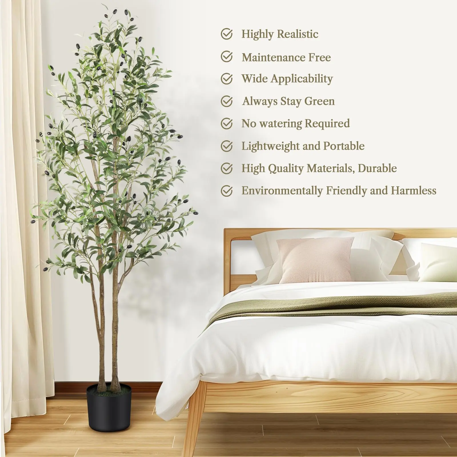 ·【Requiring No Upkeep】:Enjoy Lifelike Evergreen Beauty with Our 6ft Faux Olive Tree! No Sunlight, Watering, or Pruning Needed—Just Wipe Clean for Lasting Elegance.