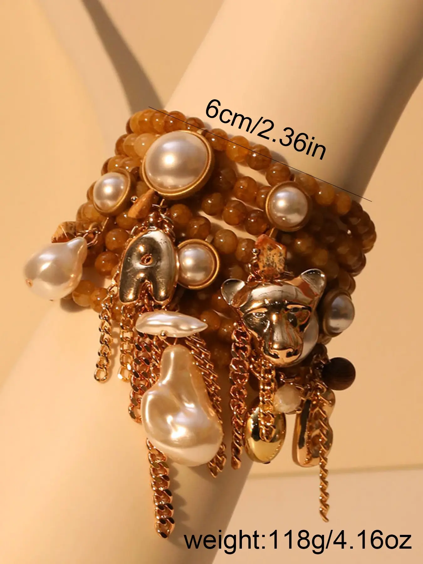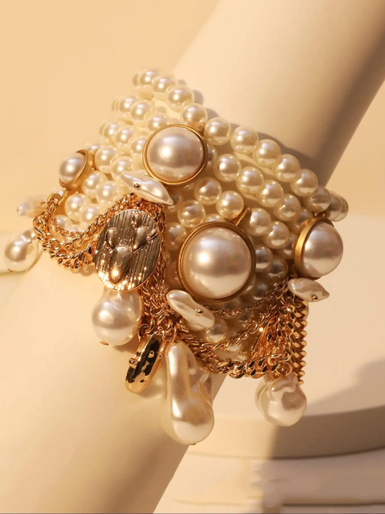 【Multi-layered pearls】: Features multiple layers of pearl chains, creating a luxurious and eye-catching appearance, enhancing your accessory collection.