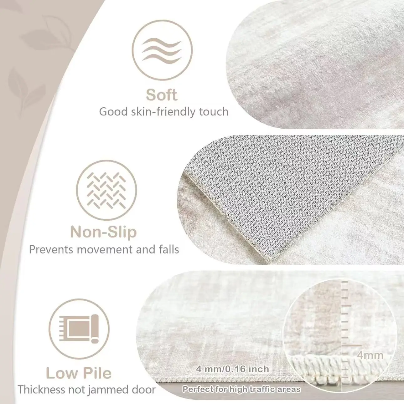 ** Crafted from high-quality microfiber, this rug features a soft, smooth texture that feels incredibly comfortable underfoot. The faux velvet surface not only enhances the rug's sophisticated appearance but also ensures the durability required for daily use.