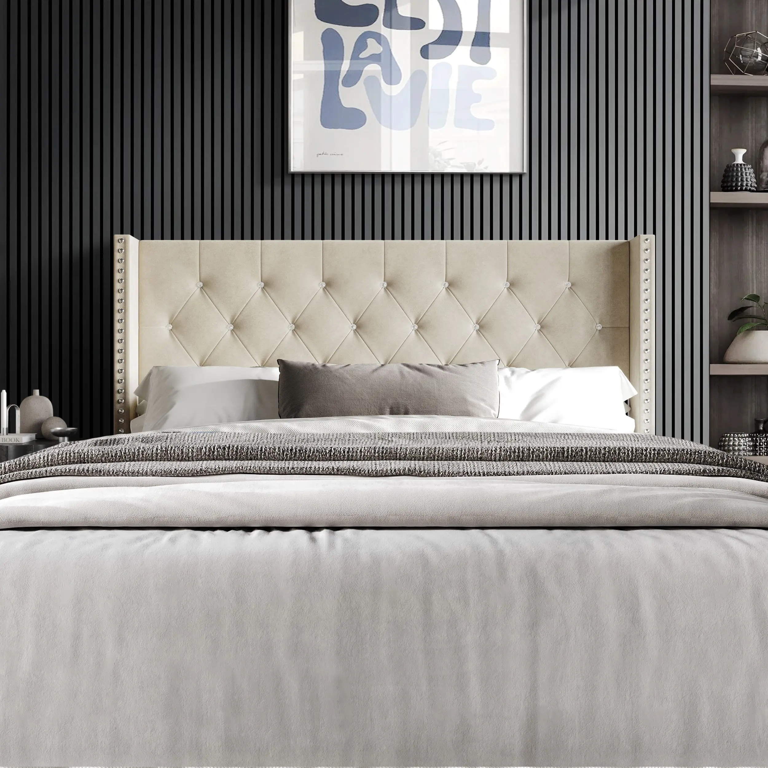 Place this headboard to create a focal point in your bedroom. Its design ensures it fits seamlessly into your decor. Transform your sleeping area with the Favorer Gretna headboard.