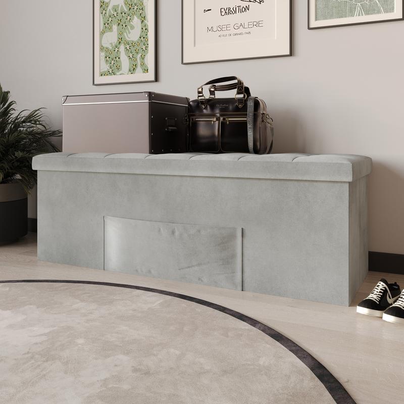 Elevate your living space with the perfect blend of elegance and practicality. The Favorer Chico 42"/12" Tufted Upholstered Folding Storage Bench with Pocket and the Florence 30" Tufted Upholstered Folding Storage Bench (without pocket) are thoughtfully designed to enhance any room with style and utility.