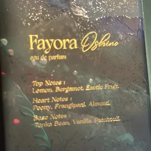 Fayora Oshino is a dreamy citrus-floral gourmand with vanilla, tonka bean, and almond. Soft yet mystical, it feels like her sister but more airy and elegant. Clean, feminine, and creamy with a warm dry down—perfect for those who love a gentle, enchanting scent. ✨