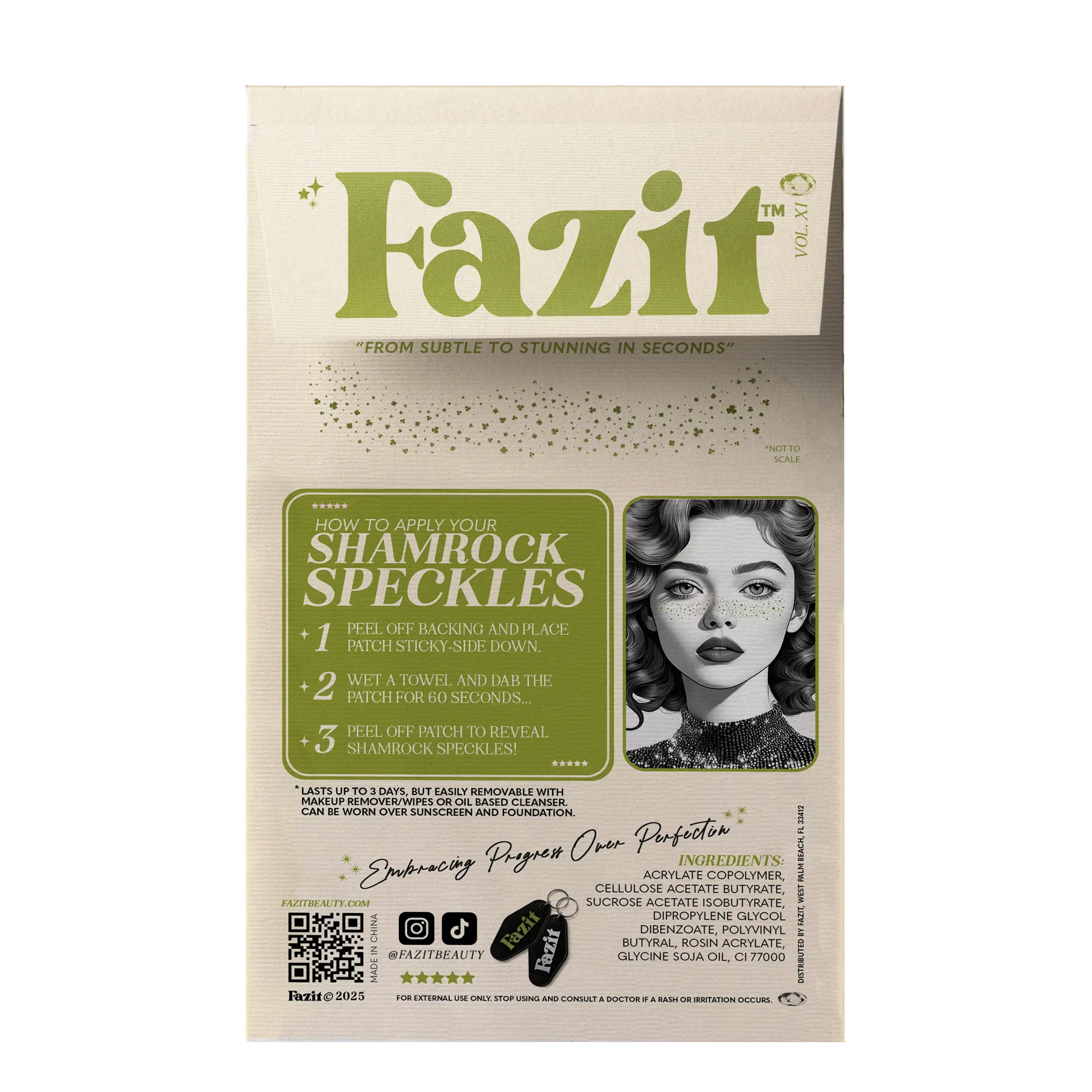 Fazit’s Limited Edition St. Patrick’s Shamrock Patches bring a festive touch of green to your look. These shimmering patches add effortless sparkle, perfect for celebrating in style. Our press, pat, peel technology makes application a breeze, so you can shine in seconds—whether you’re at a parade, raising a glass, or bringing the party wherever you go.