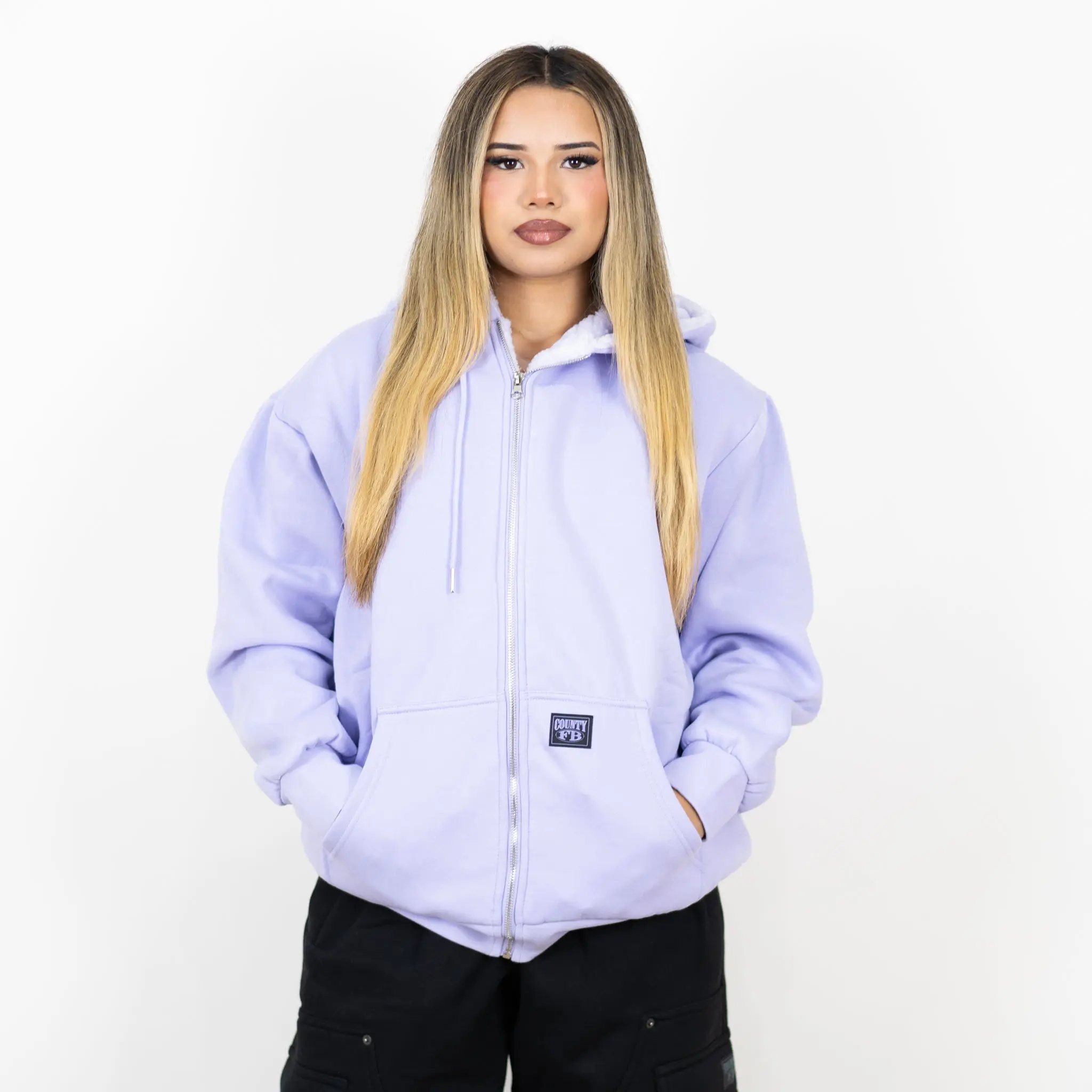 I love this hoodie so much my favorite purchase I’ve made, I got the xs and it still fits me so big😍 love the oversized jackets like this !