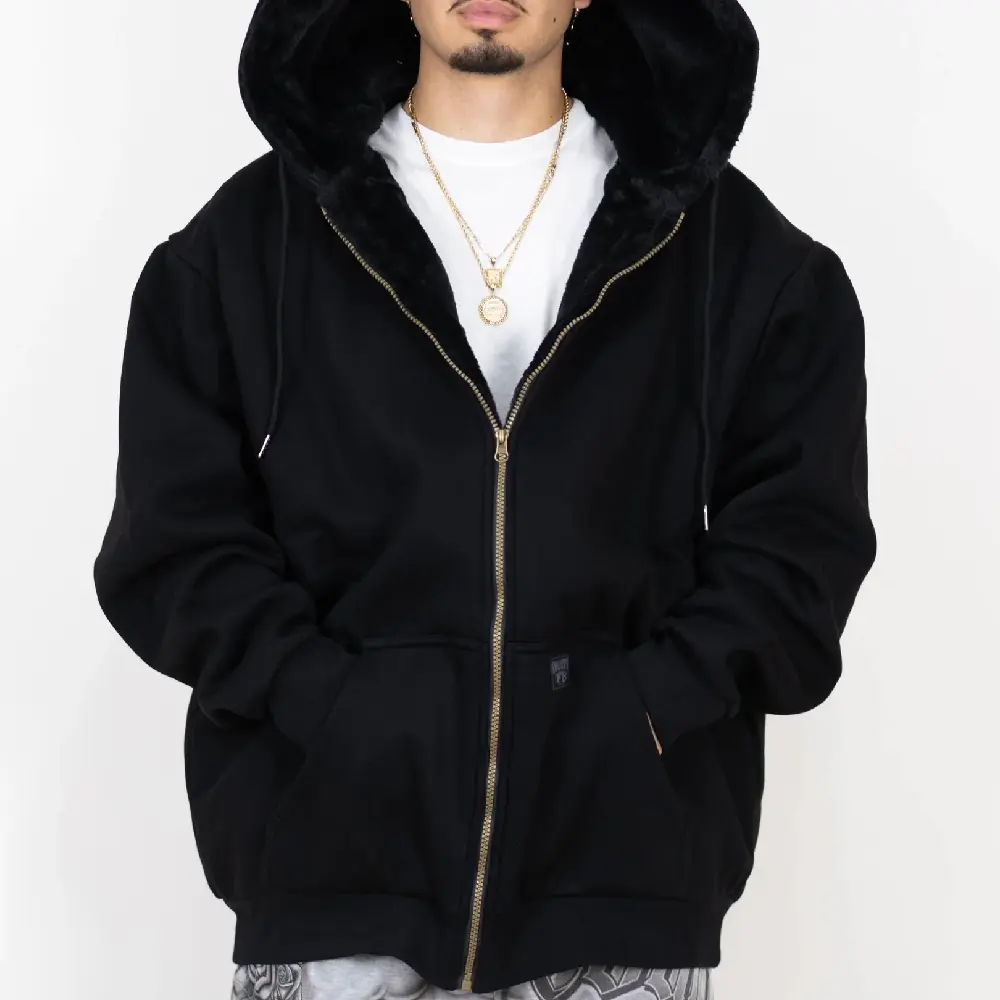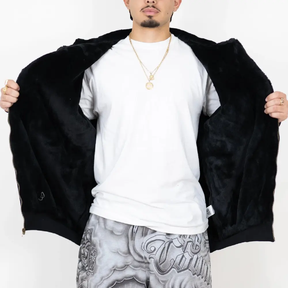no fur in sleeves, zipper gets stuck in the fur, sleeves kinda short, super uncomfy to sit in especially while driving