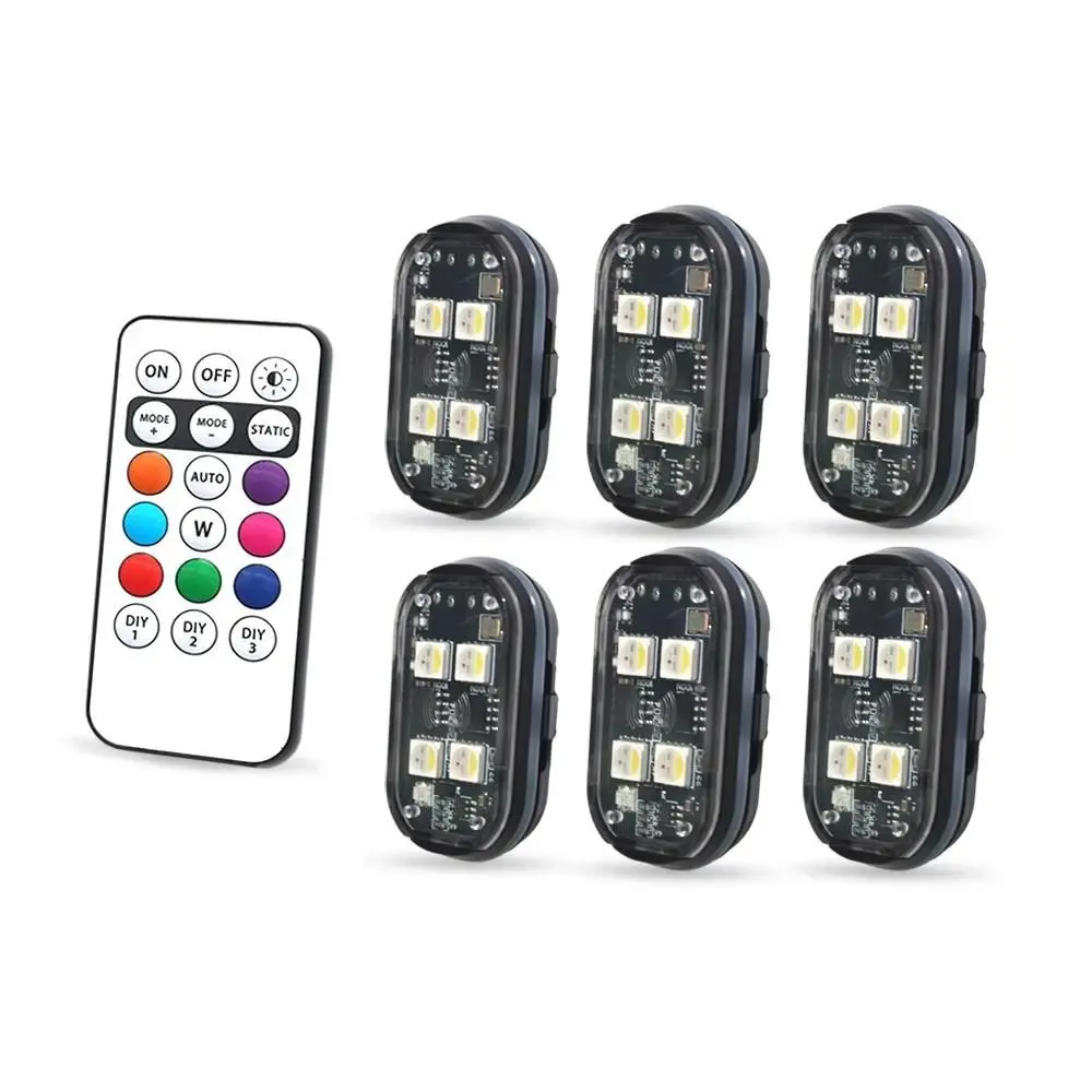 FCCEMC 2/4/6PCS Wireless LED Strobe Lights with Remote Control, Wireless LED Warning Lights 8 Colors USB Charge Drone Car Truck RC Aircraft