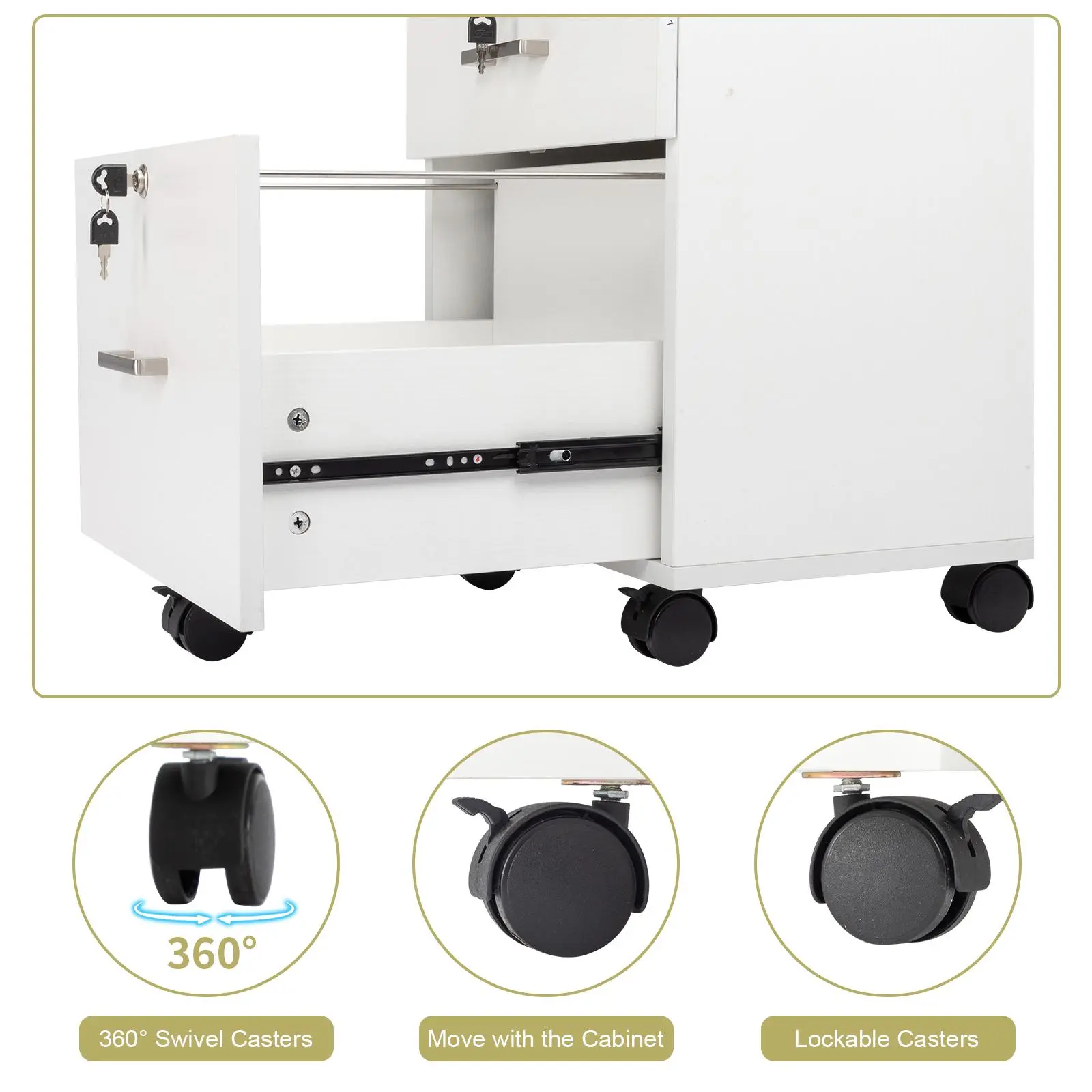 This Cabinet with Wheels, easy reach of your desk. It is ideal for both home and office use with its neat and modern appearance. Provides ample storage space, makes your life comfortable.