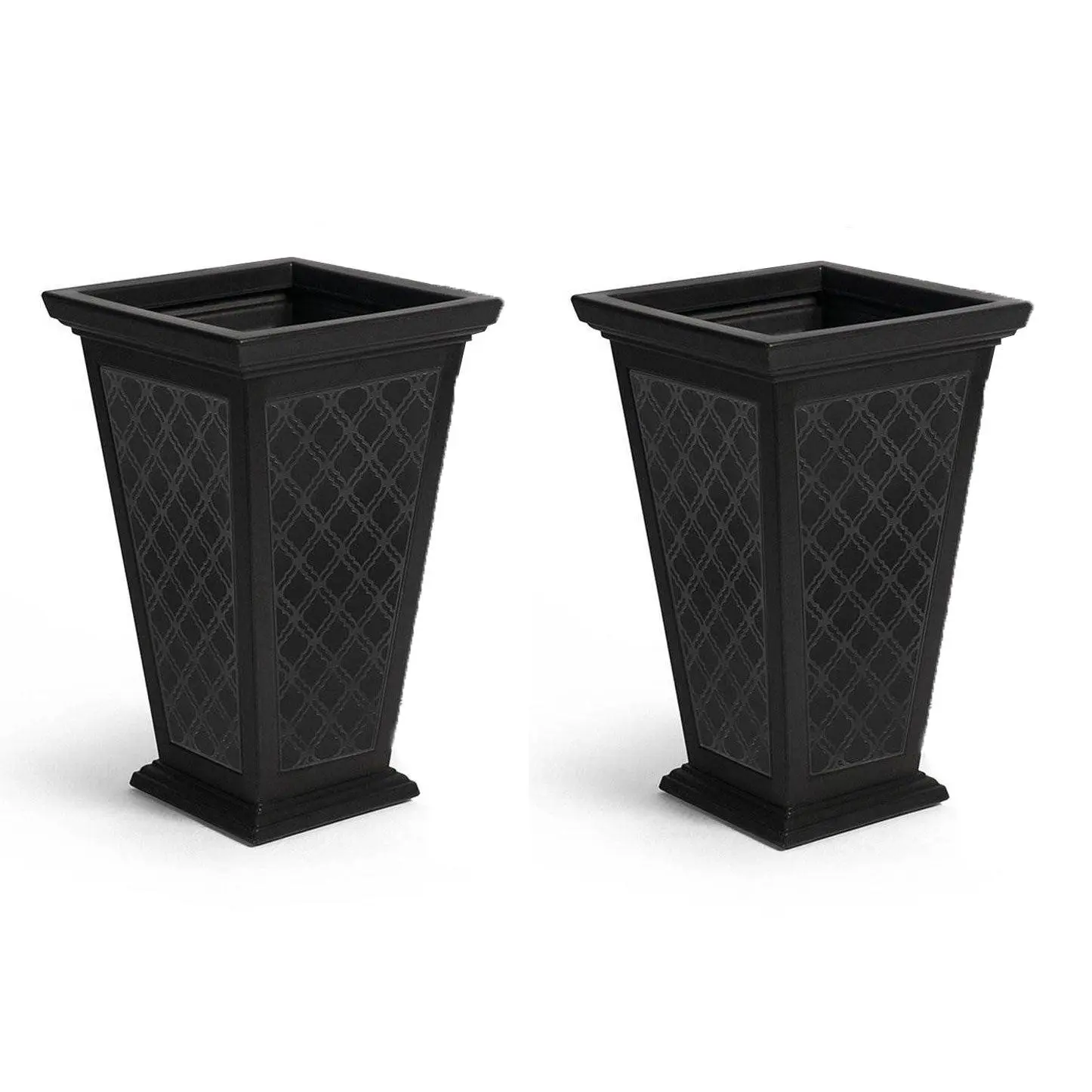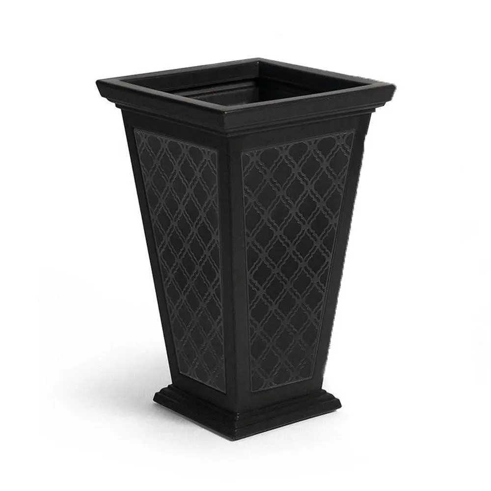 Enjoy the classic look of a tapered pedestal planter with the modern convenience of self-watering with the FCMP Outdoor Casablanca Resin 24" Self-Watering Pedestal Taper Planter Set.These planters are self-watering, so they do all the work for you. A reversible liner allows you to drill drainage holes if you prefer to display a potted plant elevated in this pedestal planter.Each planter stands 24 inches tall and features a Moroccan-inspired design. High grade recycled resin that is BPA-free and UV inhibited means they will not fade in sunlight.Refresh your front porch or patio and elevate your style with the durability and elegance of the Casablanca Resin 24" Self-Watering Pedestal Taper Planter Set by FCMP Outdoor.