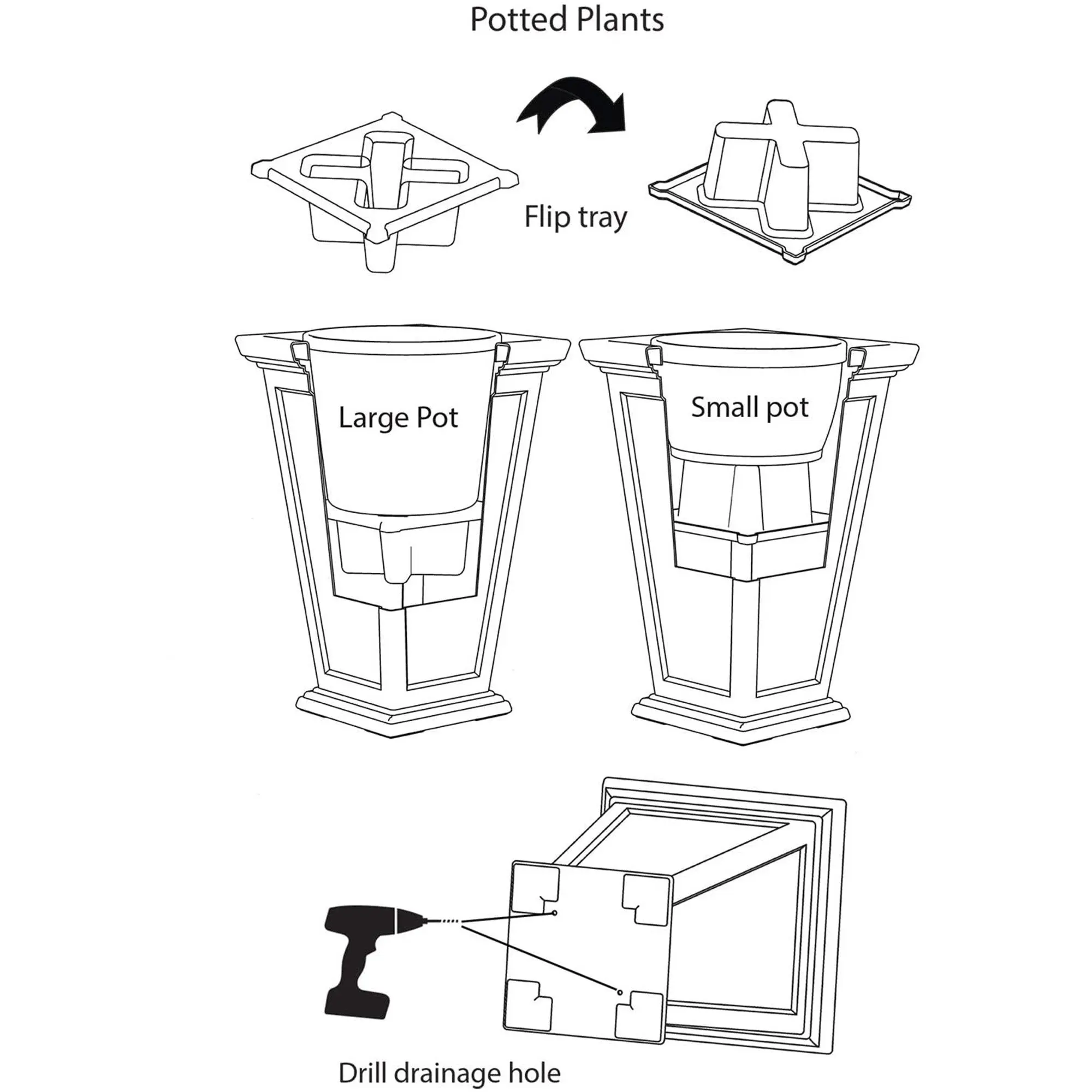 Reversible liner allows the planter to be used with a self-watering reservoir or drill drainage holes to drop in a potted plant