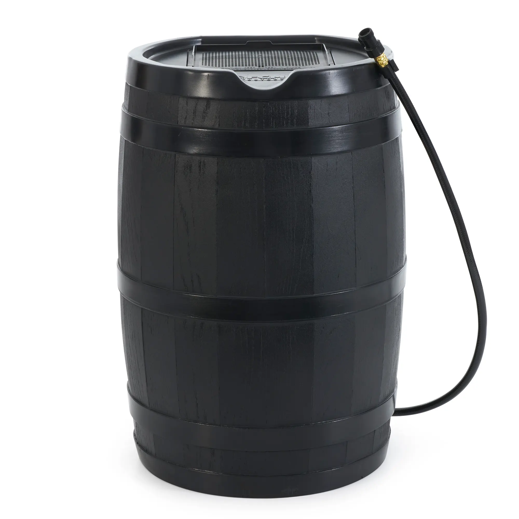 Save money and help the environment with the FCMP Outdoor RC45 Rain Barrel. This 45-gallon barrel collects rainwater from your downspouts, providing chemical-free water for your plants. It features a fixed lid for safety, a 3.5-foot garden hose with shut-off valve, and a flat back for easy placement. Ideal for conserving water, it’s not suitable for freezing temperatures.