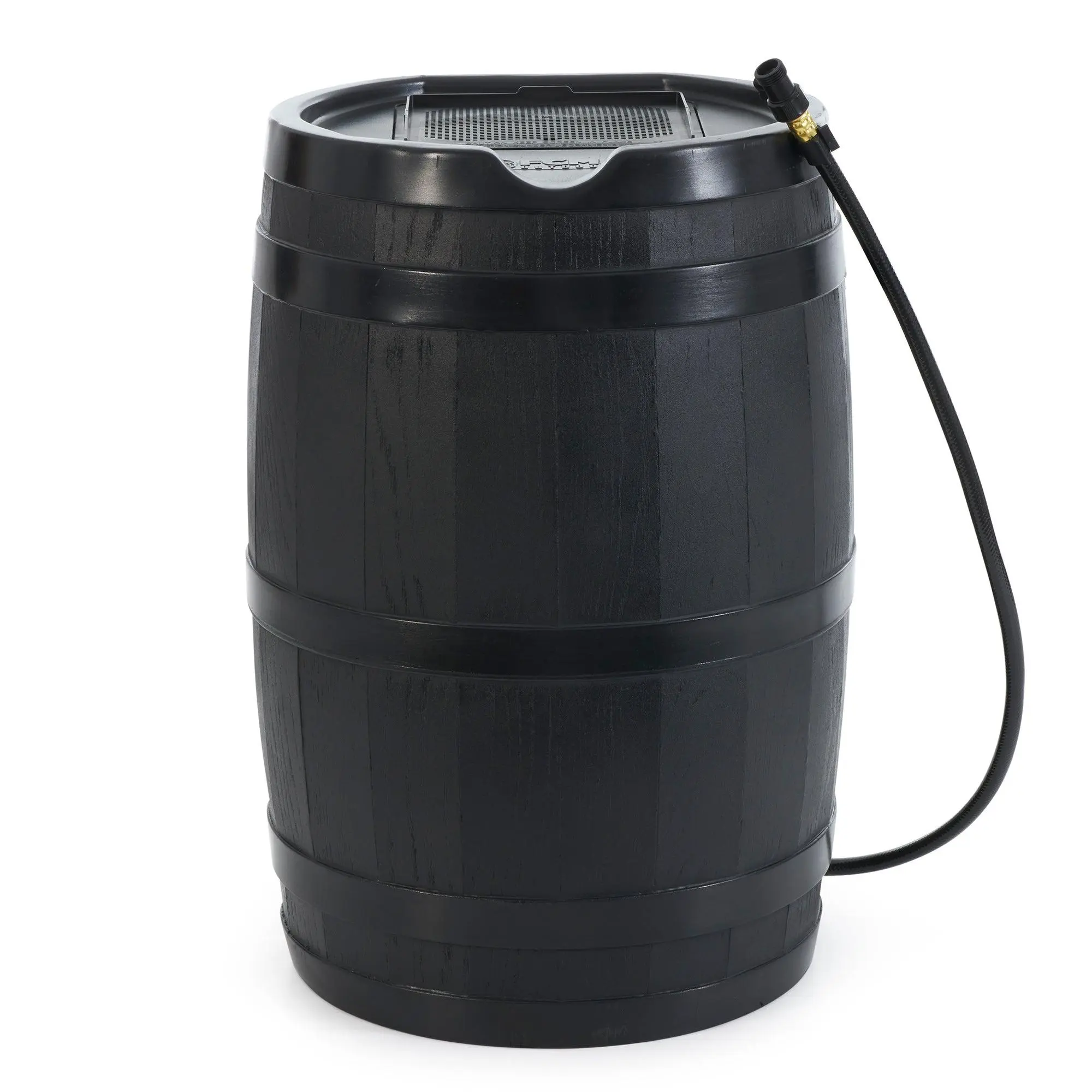 ·Large, 45-gallon capacity rain barrel with the appearance of traditional wood