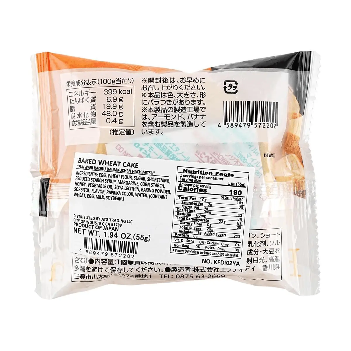 FDI Baumkuchen Honey Flavor Japanese Snack Cake 55g - Soft & Fluffy Pillow Cake for Breakfast & Tea Time