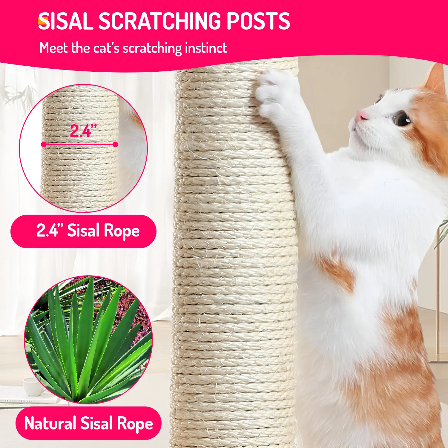 Integrated sisal scratching surfaces encourage healthy habits. Cats love scratching sisal due to its sturdy, coarse texture. This helps prevent furniture damage. The posts are covered in sisal, promoting safe scratching. 🐾