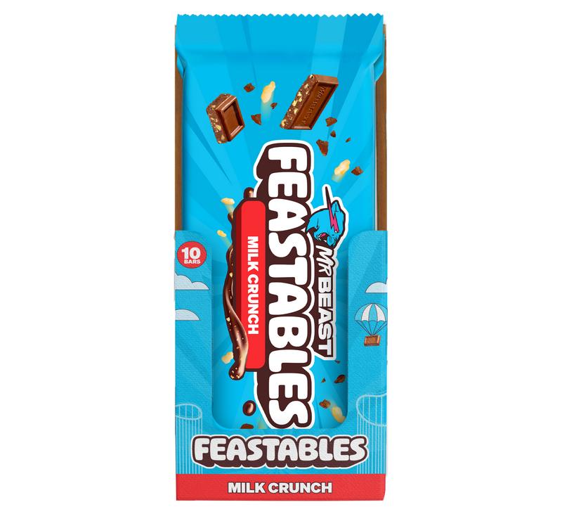 Feastabes by MrBeast - Milk Crunch Chocolate Bar - for Adults & Kids, Chocolate, Candy, Cocoa Sweet & Crunchy Snack, Fairtrade Certified, Kosher, Perfect for Gifting or Snacking