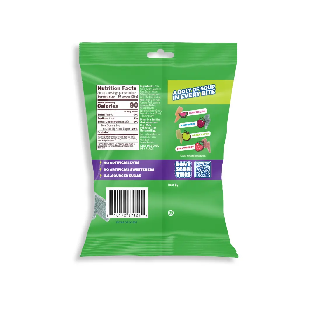 Sour That Zaps Your Taste Buds: Lightning bolt–shaped gummies packed with face-puckering sour flavor.