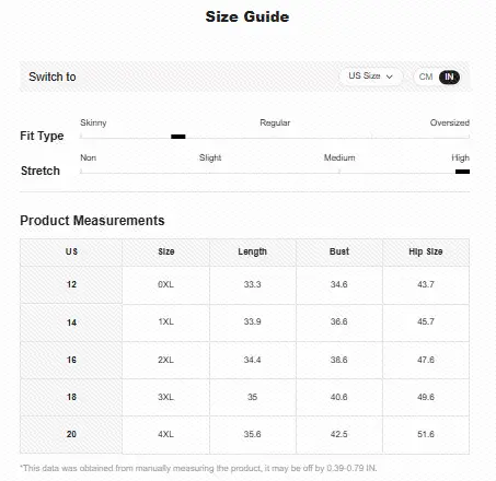 Actually better than I thought. I'm generally a 14 on top and 16 on bottom. So, I ordered a 2xl. The dress fits great, feels nice and the built in bra provides a decent amount of support. (If I were to high impact exercise, I still would need a sports bra.)
