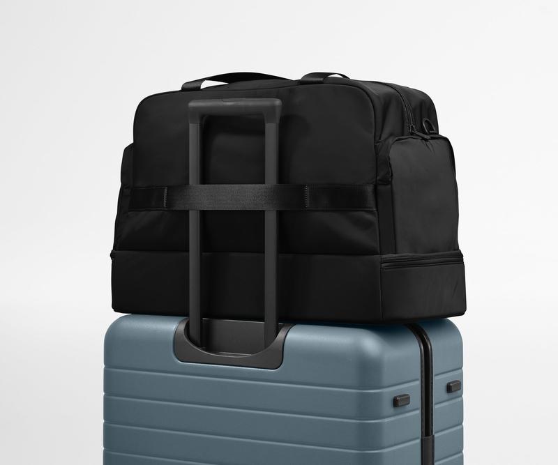 With a roomy 44L capacity, it packs like a Carry-On, fitting everything you need. Crafted in our water repellent, washable Featherlight fabric and tested for durability, this Weekender is comfortable to wear yet tough enough to keep up. Carry it by hand, over your shoulder, or as a crossbody—or slide its trolley sleeve onto your Away suitcase to keep things rolling. That's a big lift for a light bag.