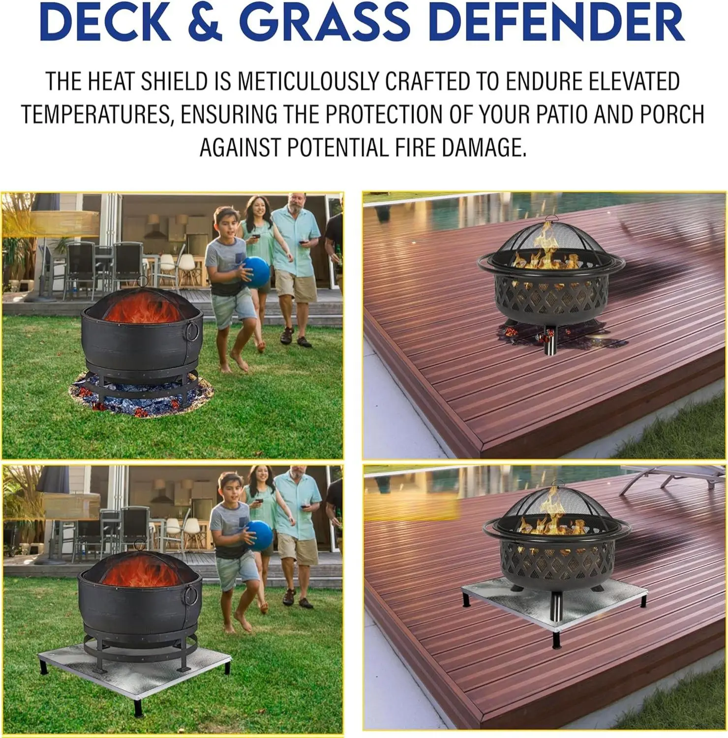 FEBTECH Deck Defender and Grass Guard Fire Pit Heat Shield - 26"x26" Pre-Insulated Steel Heat Shield with Fiberglass Mat for Outdoor Fire Pits-Perfect Protection for Grass,Patio & Wooden Deck Surface