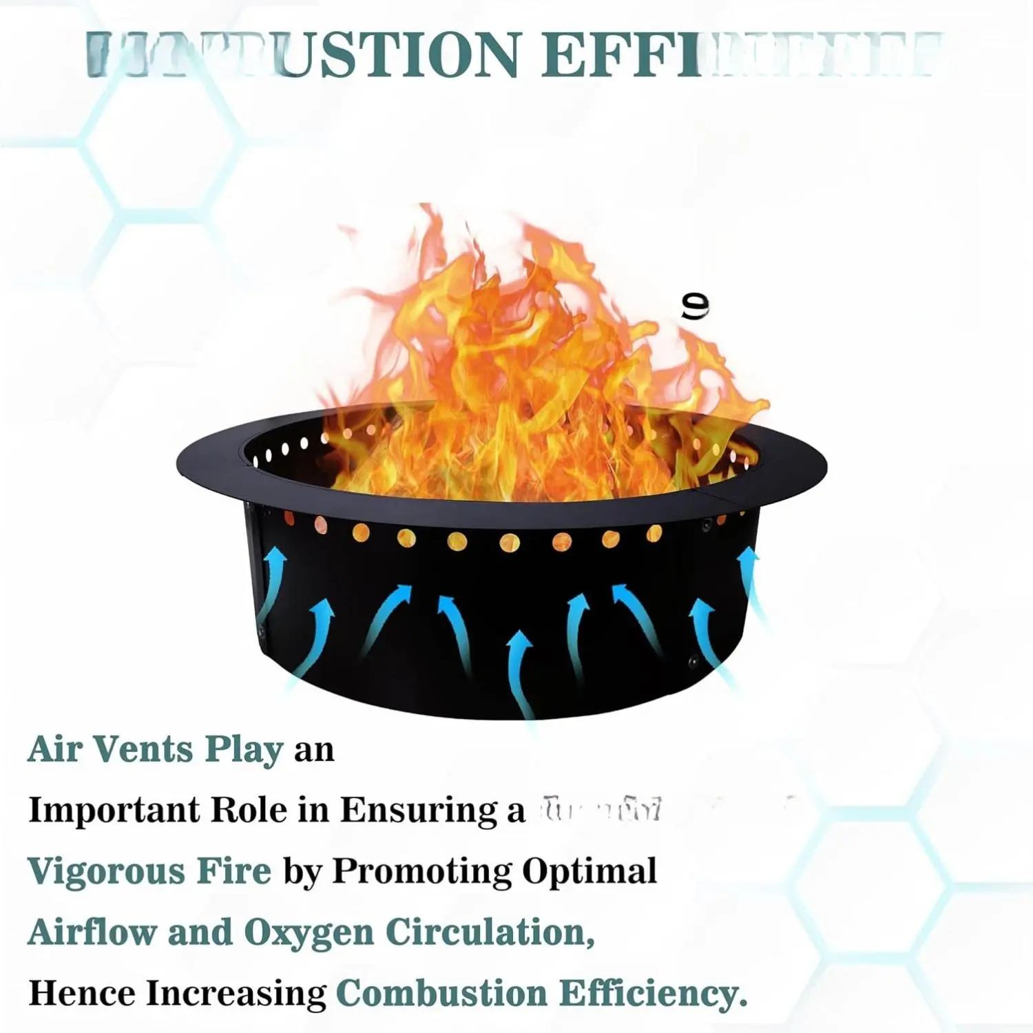 Air vents in the design promote airflow and oxygen circulation, enhancing combustion efficiency. This results in a steady, powerful fire with minimal smoke, providing warmth and ambiance without discomfort. 🔥