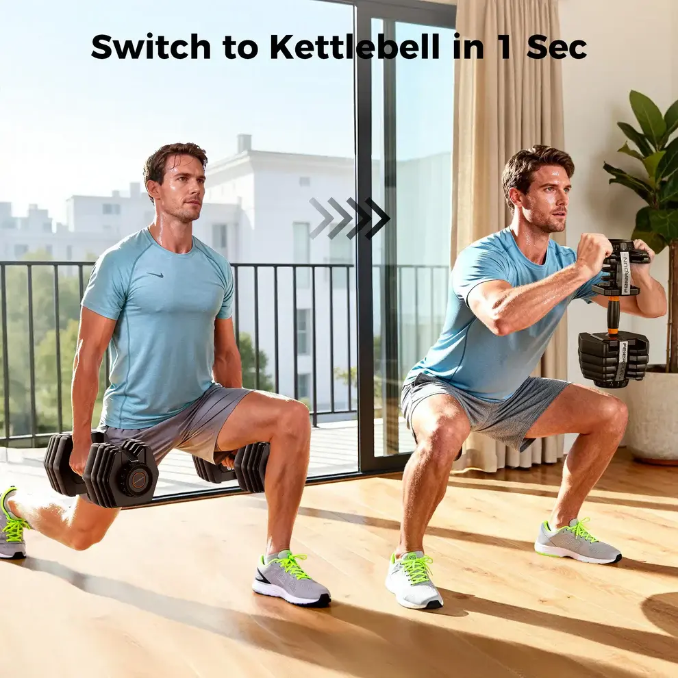 ·2-in-1 Dumbbell & Kettlebell Design — One versatile set supports both dumbbell and kettlebell exercises for more dynamic and effective training.