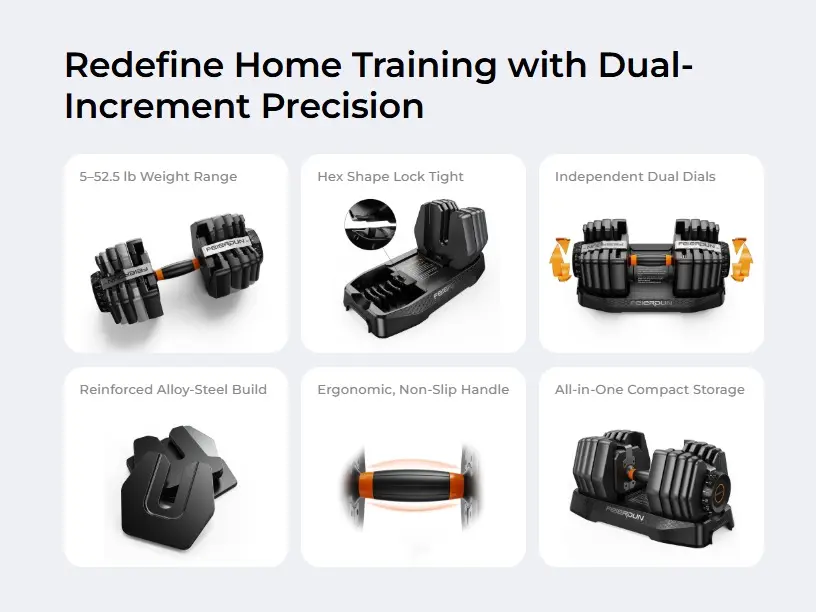 ·Space-Saving Compact Design — Replaces 10+ pairs of traditional dumbbells, making it perfect for home gyms with limited space.