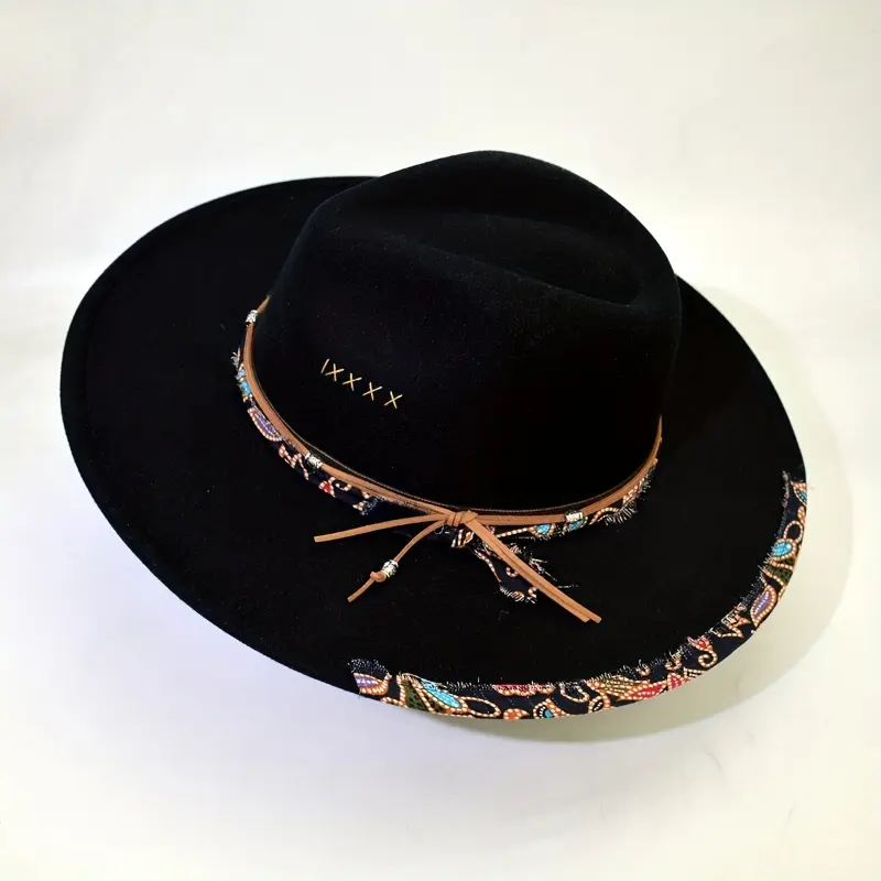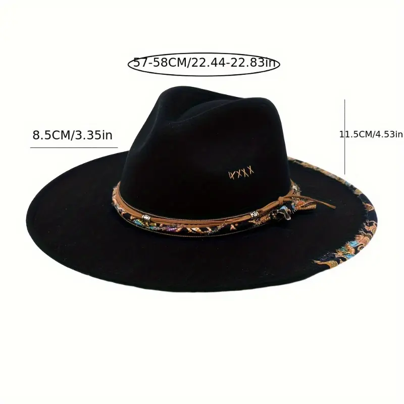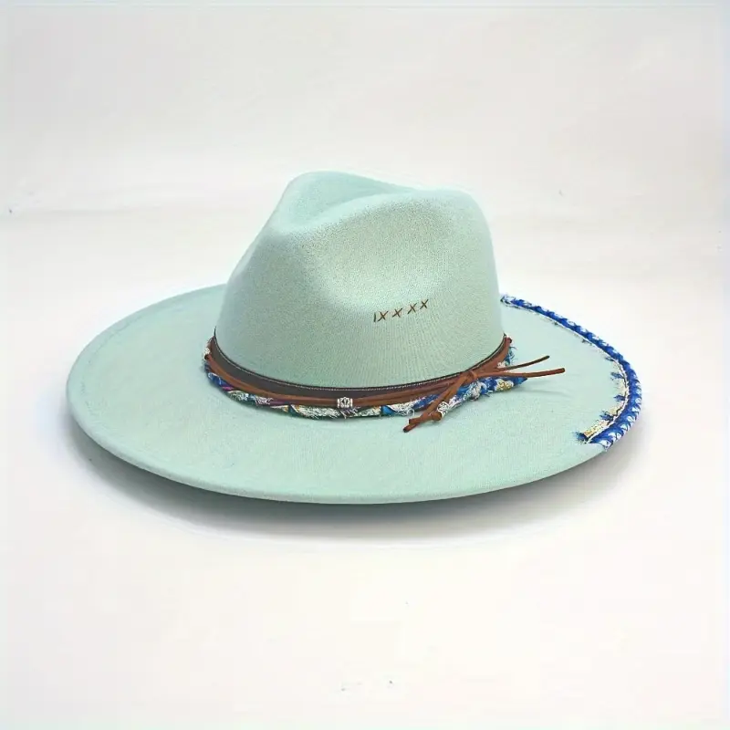 1pc Elegant Cowboy/Cowgirl Hat with Turquoise Belt, Polyester Woven Fedora, Bohemian Vintage Style, Lightweight, Non-Washable, Inelastic, Featherless, with No Washing for Western Themed Events, Parties, Engagement, Cosplay, Graduation, Masq